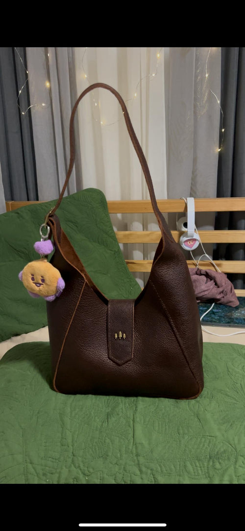 I'm quite pleased with the Flora bag. I got an "Almost Perfect," but I am not sure what its flaws are supposed to be. I can't find any. The bag is a good size for carrying stuff, and I carry a lot of stuff! I love the smooth chocolate leather. it looks refined. The color really is chocolate, a nice neutral-to-cool brown, a bit lighter than Grizzly or Cold Brew. The leather is firm, not slouchy. I'm a fan of the little metal trees.