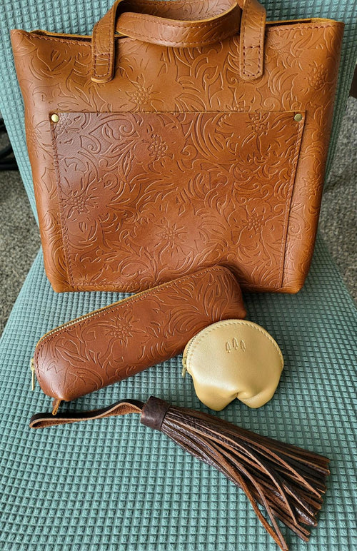 Our leather is incredibly easy to care for. With time and use, the natural oils in the leather will rise to the surface, developing a beautiful patina and smoothing any scuffs or scratches that may have accumulated. Learn more about caring for your new leather product.