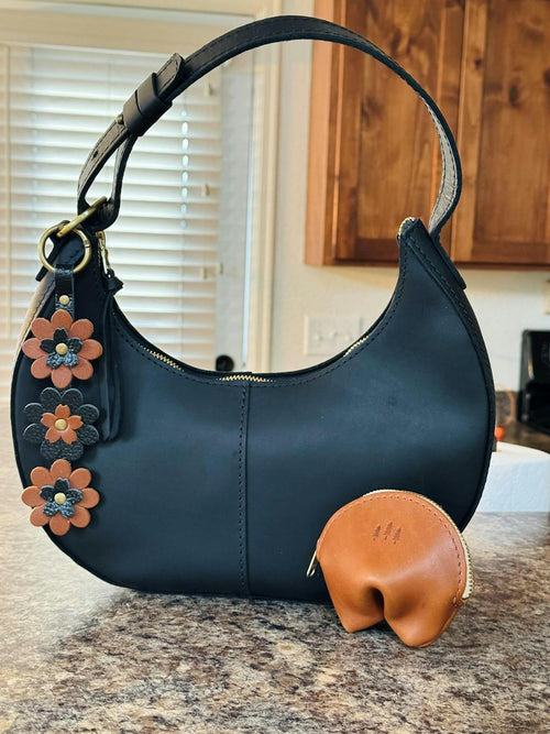 I haven’t quite found a use for this little cutie yet, but it is definitely a fun way to see a new leather in person (and potentially win a gift card, apparently!). I have seen a tutorial showing how to cut the rivet that forms the fortune cookie shape and turn it into a cute little flat pouch, which honestly looks more useful (less bulky) to me… I may try that at some point, or I may keep it as is and use it to carry items I only need with me temporarily, like cough drops or something. In the meantime, it is adorable!