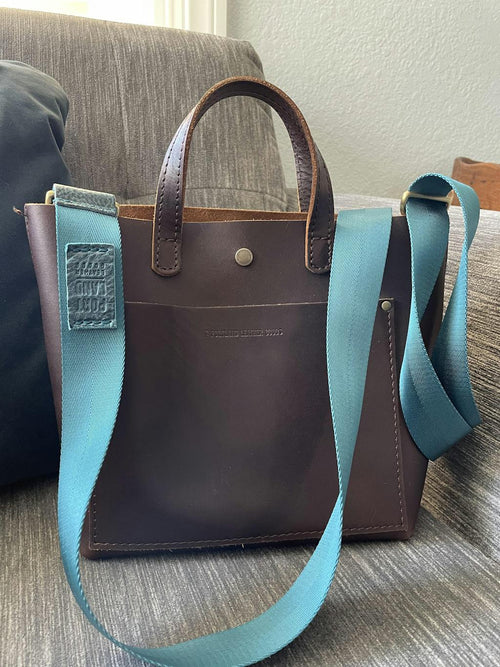 The navy strap looks great on my mini deep water tote. Great quality
