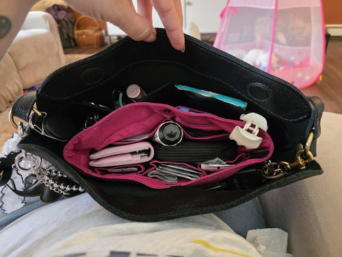 I'm usually a tote girl. I have a two year old and work at a school, so I carry a lot with me. But I downsized to the koala because I wanted something that looked different and was cute. I love the koala sling so far, if they were to make an oversized version, I'd definitely scoop it up! I also have a small canvas organizer from PLG to organize my things. I usually use pouches, but I love the organizer. Another thing I love are the D-rings for the strap so that I can hang charms on the outside my bag as well as clip my keys and school badge on the inside for easy access. Don't hesitate to get the Koala Sling!