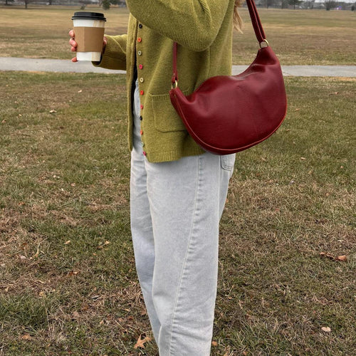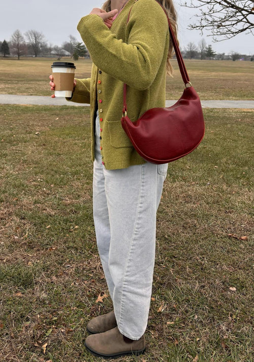 I'm loving my large Bacalar Koala so far! I have a large in Bacalar (omg) and a medium in Bone. I thought the large would feel bulky on my petite frame and it's just right, surprisingly. It's a fun, unique and interesting slight crescent shape and I really like the magnet enclosures as they're easy to maneuver single handedly. This isn't a bag for more than the essentials, as I noticed stuffing it too much makes it look wonky, but for anything bigger my go to is the Lola, a stark contrast shape wise. I like having options. It's a great minimalist option that can be worn multiple ways. Bacalar is just sooo luscious!