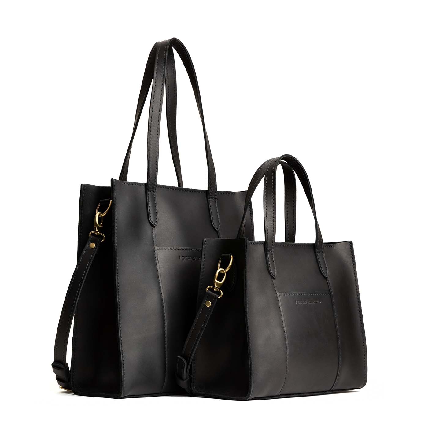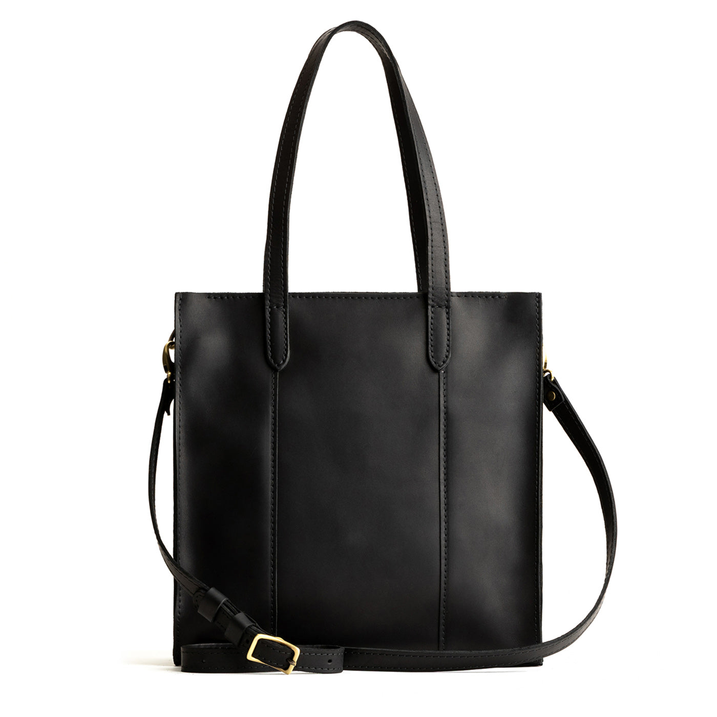 Black | Structured large tote bag with overlapping panels and crossbody strap