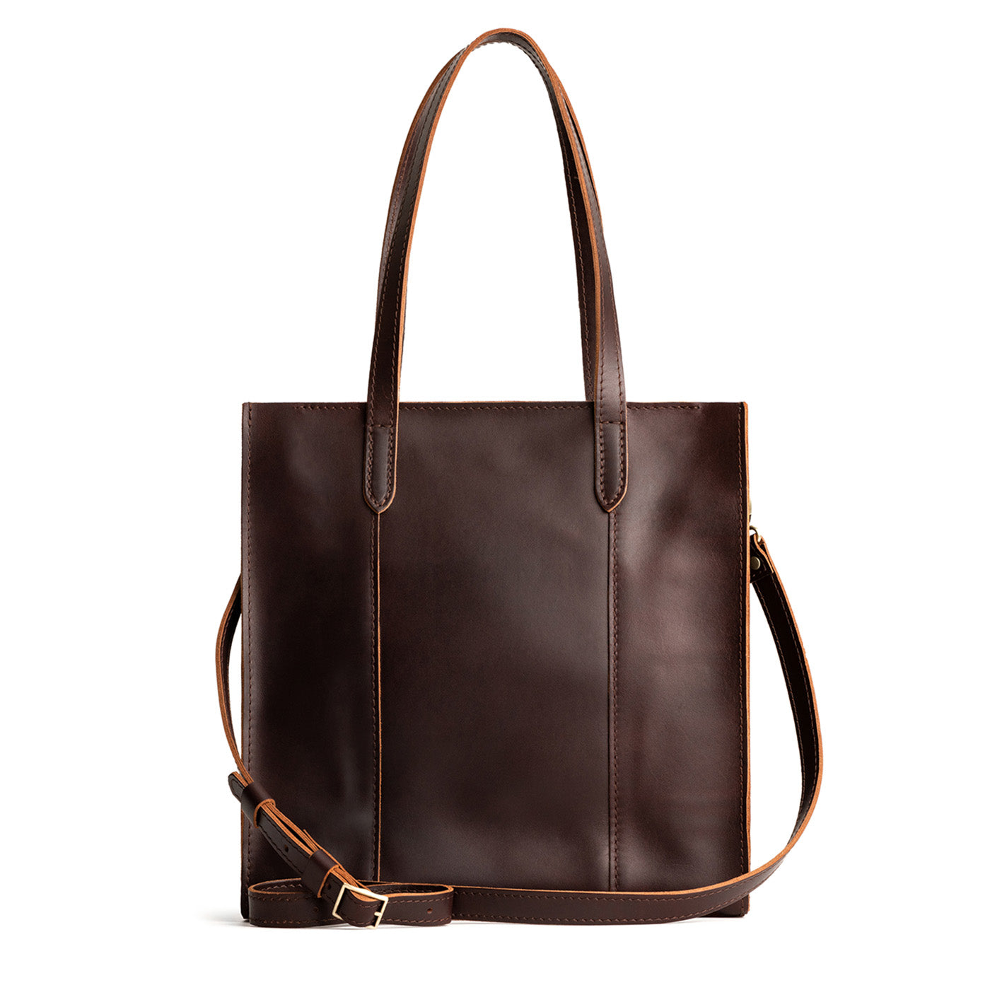 Purchased the large zippered Lola in Cognac for my daughter. She wanted a professional tote to carry her wristlet wallet, water bottle, small lunch bag, small essentials pouch, iPad mini, and light sweater. I also added a matching tassel for a little flair. She loves the color, and is very happy with the size.
