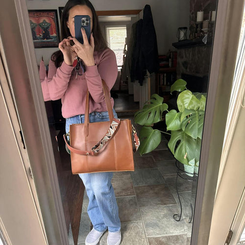 At first I was a wee bit skeptical of buying this tote, but when it arrived I loved the color and was so glad I bought a matching wallet. It doesn’t have a lot of compartments to put things in like my old handbags but I purchased a taco tassel pouch to put a few odds and ends in. All together I’ve learned to love it. I ordered two more totes in different colors and had to return one because it looked like it was from the “All most perfect collection”! I really liked the honey color because I’d already purchased a honey colored wallet in my previous order. I’m still upset about the transaction. The bag was very discolored with a scratch on the bottom. I decided to do a gift card. I hope I made the right decision so that when I decide to order again something like this will not be shipped to me because I didn’t purchase an all most perfect item. However, the other totes are great!