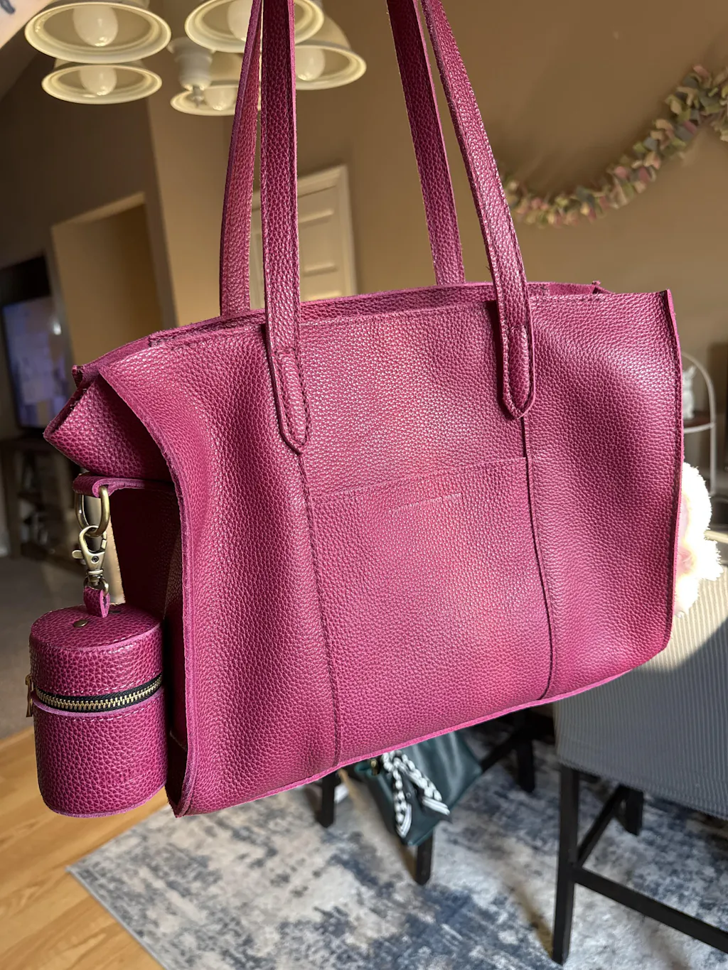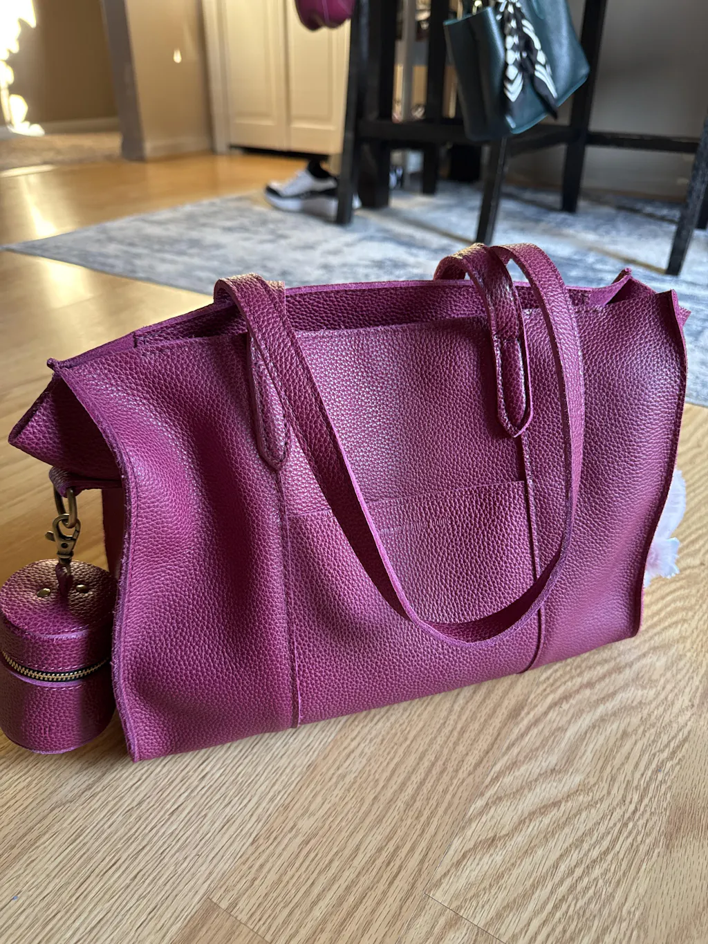 This is my first PLG. I wanted a structured tote with the ability to wear it crossbody for church. It's classy and stunning. The cognac color looks great with all colors.