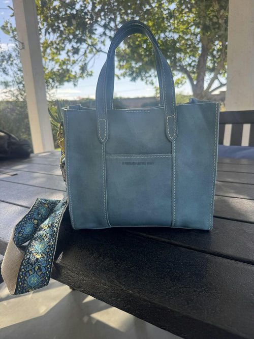 Cowboy Blue*Classic | Structured mid-size tote bag with overlapping panels and crossbody strap