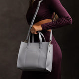 Formal Grey | Structured mid-size tote bag with overlapping panels and crossbody strap