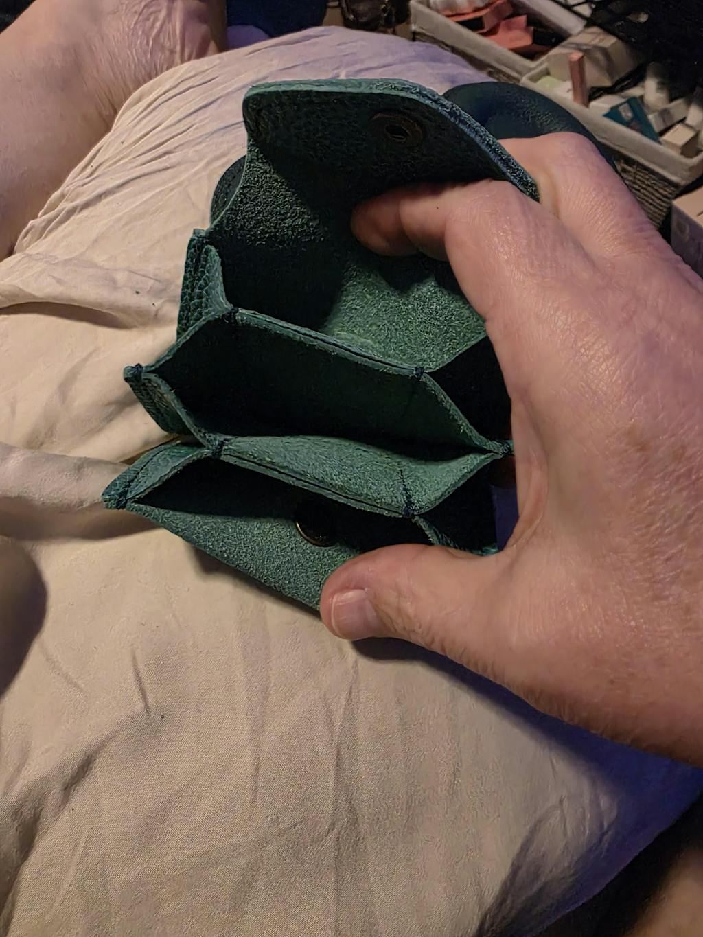 I was surprised how much I like this wallet! So solid! With three sections I can carry my IDs, cards, and cash with change and room to spare! The snap is solid and construction perfect. Also- the Orchid color is 😍!