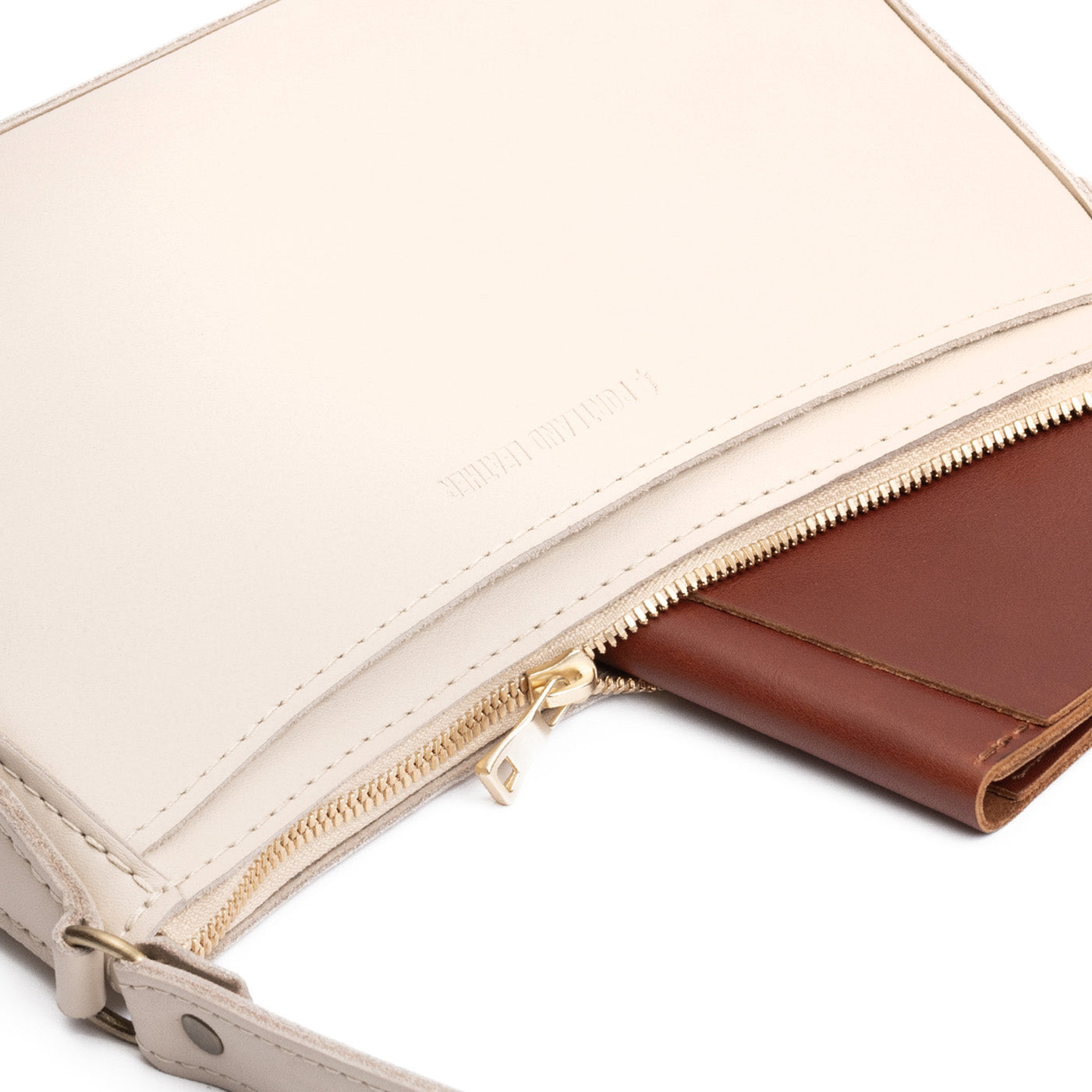 Our durable leather goods are unlined, featuring the natural suede side of the hide. Since fabric-lined bags inevitably discolor and tear with use, we chose to showcase the soft sueded underside of our hides, ensuring that your bag lasts a lifetime.