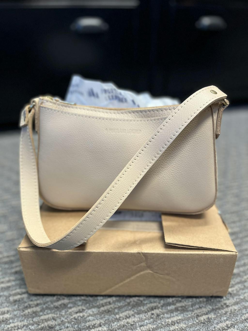 I’m so happy with this bag, the color Honey is beautiful and smells divine! It’s going to be perfect for spring & summer. It sits very comfortably on the shoulder & actually fits a good amount inside it for being a smaller bag. The zipper is a little wonky the way it wrinkles when zipped closed but you can push it down to reshape it when the bag is filled at least, other than that the quality is beautiful! Highly recommend.