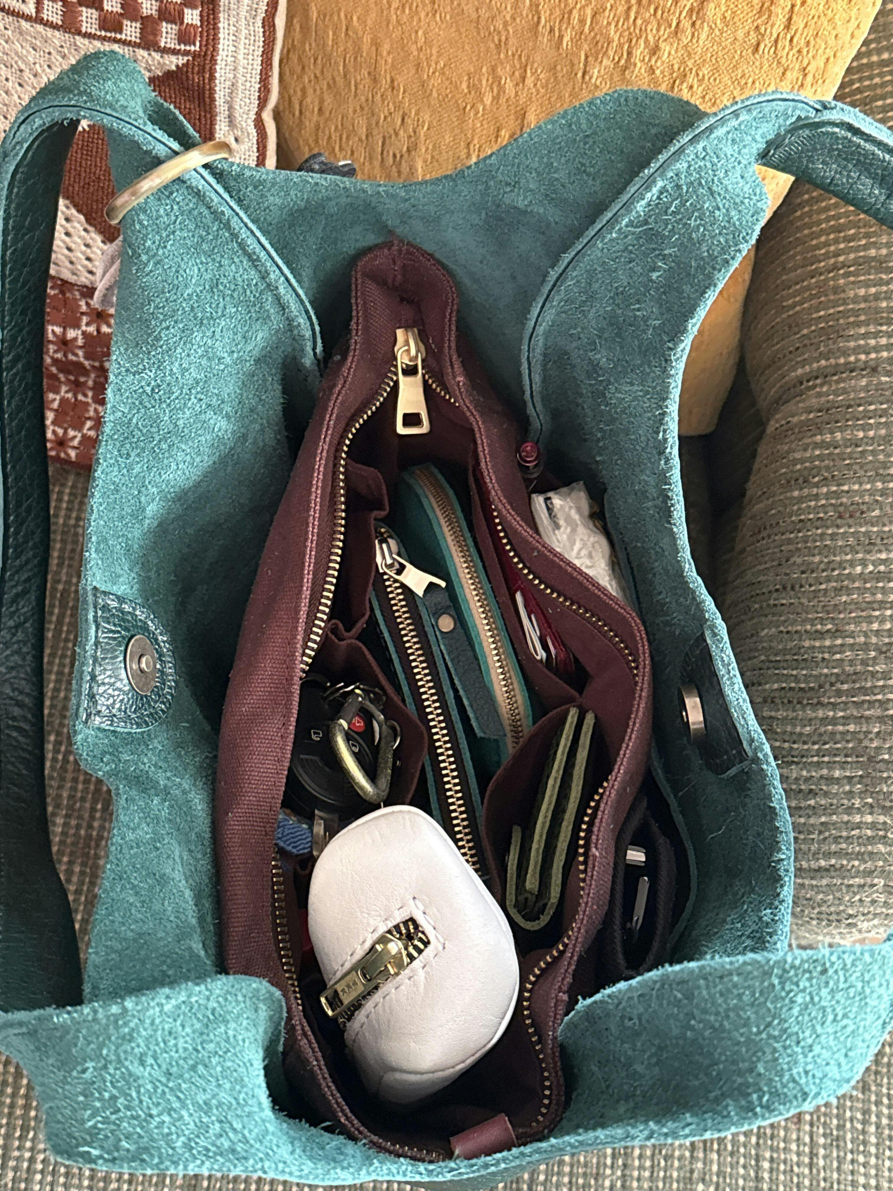 I love this bag so much! It holds more than I expected which is good because I carry a lot with me at all times. Can occasionally slip off the shoulder but it doesnt bother me! The green is truly the perfect shade. Im honestly considering getting a second color.