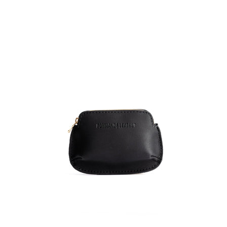Black | Leather pouch with curved seams and top zipper