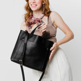 Black | Midsize crossbody tote with handles and a pocket