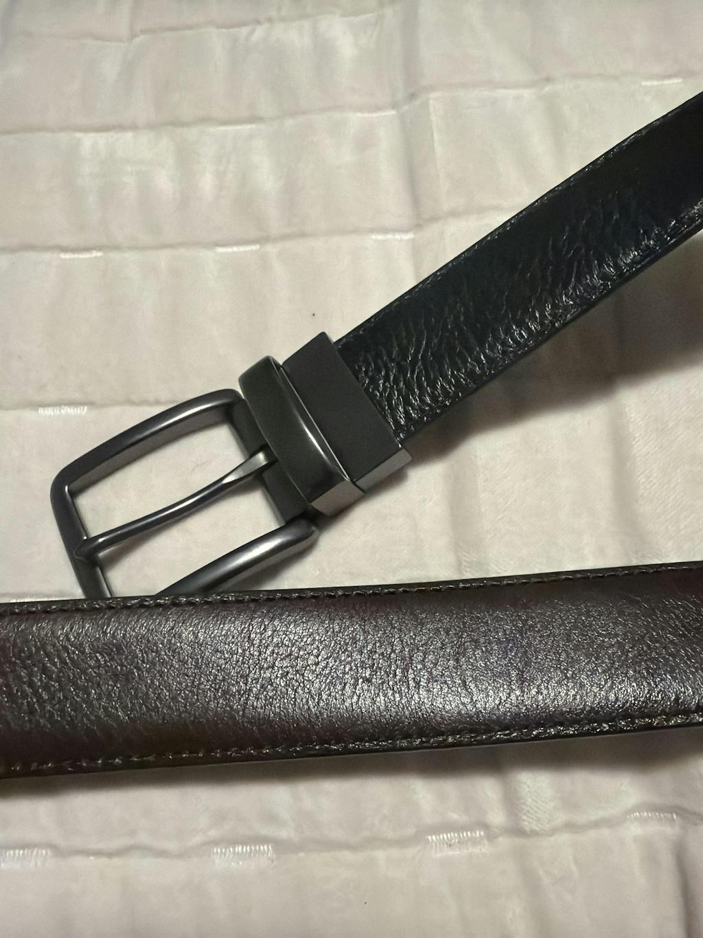 - Unique reversible style - choose from a lightly pebbled black or smooth brown leather