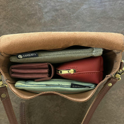 Our durable leather goods are unlined, featuring the natural suede side of the hide. Since fabric-lined bags inevitably discolor and tear with use, we chose to showcase the soft sueded underside of our hides, ensuring that your bag lasts a lifetime.