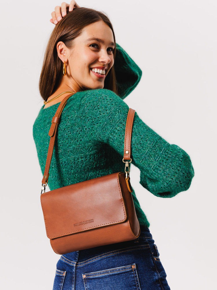Chestnut*Mini | Leather Crossbody Bag with Magnetic Messenger Bag Closure
