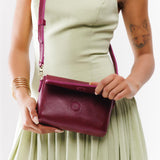 Orchid*Mini | Model Wearing Leather Crossbody Bag with Magnetic Messenger Bag Closure