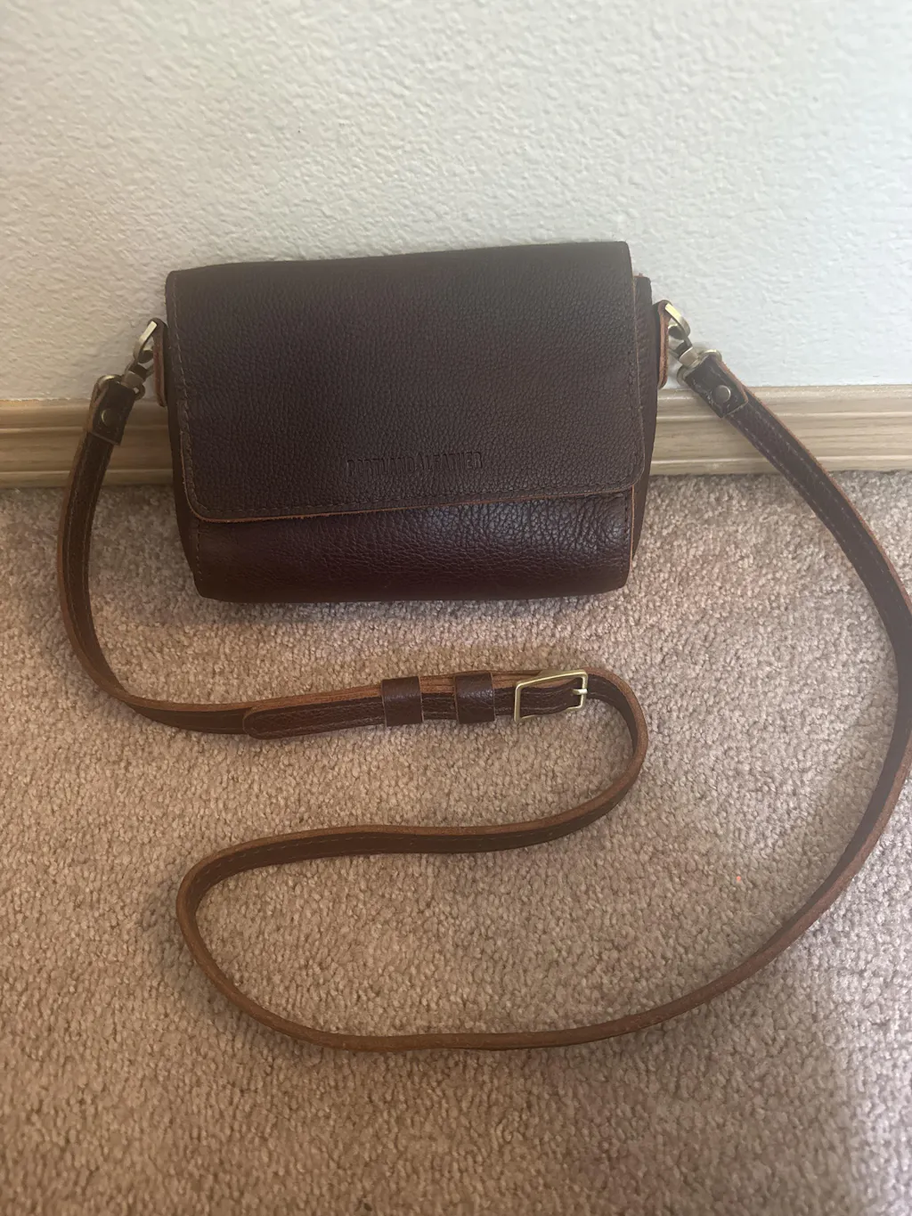 I got the grizzly color mini crossbody with the mini Daisy wallet. They match perfectly and I love the color. The bag can hold a phone, wallet, and a few more small, miscellaneous items or a small tissue packet, for example. It also has this great little pouch on the inside that I found perfectly holds flat bills. I didn’t know I needed that! It’s light, and it’s the perfect size for what I need. The raw leather on the inside is a luxurious touch because it feels like a handmade item. The magnetic closure is sufficient, and the strap is long enough to use it as a crossbody, as advertised.