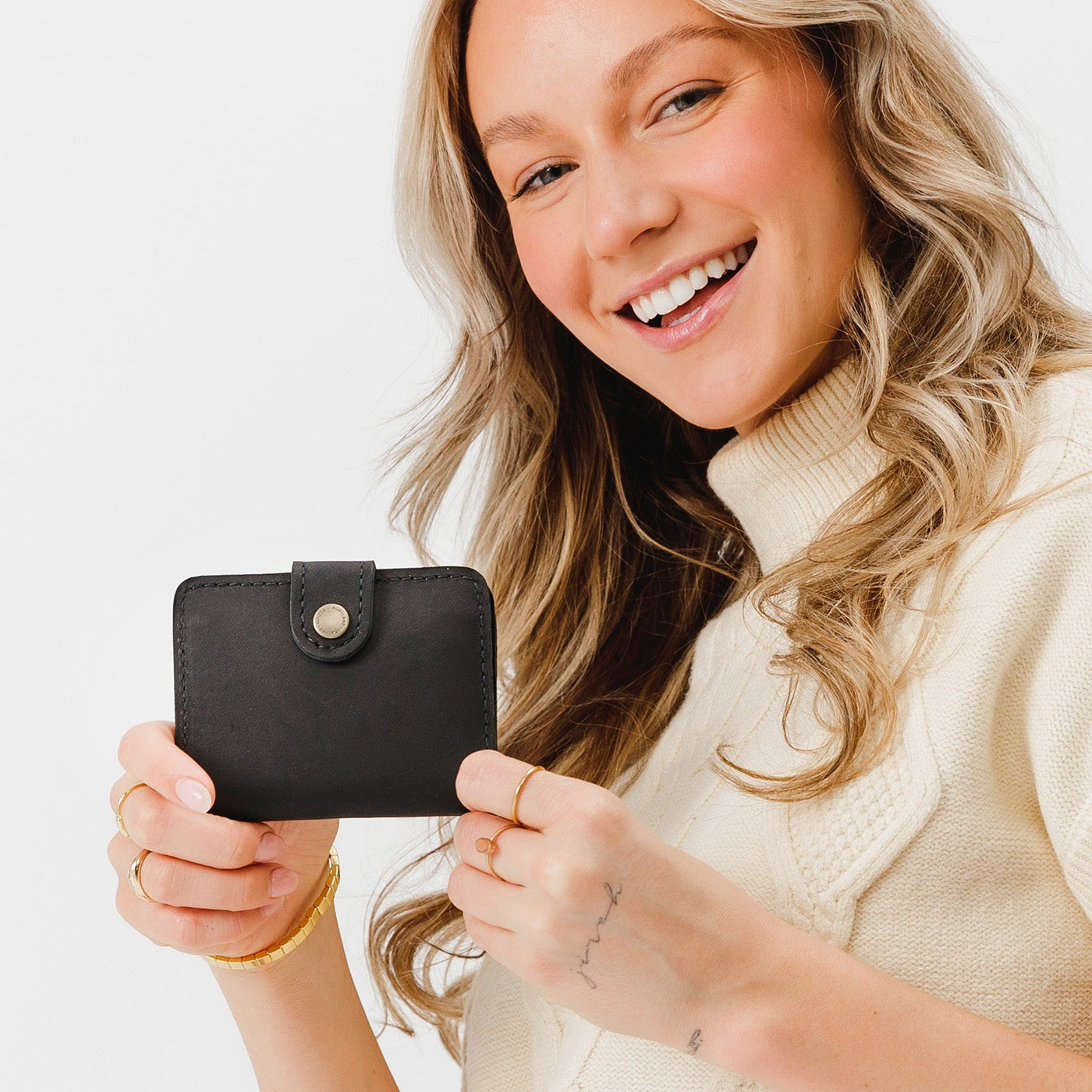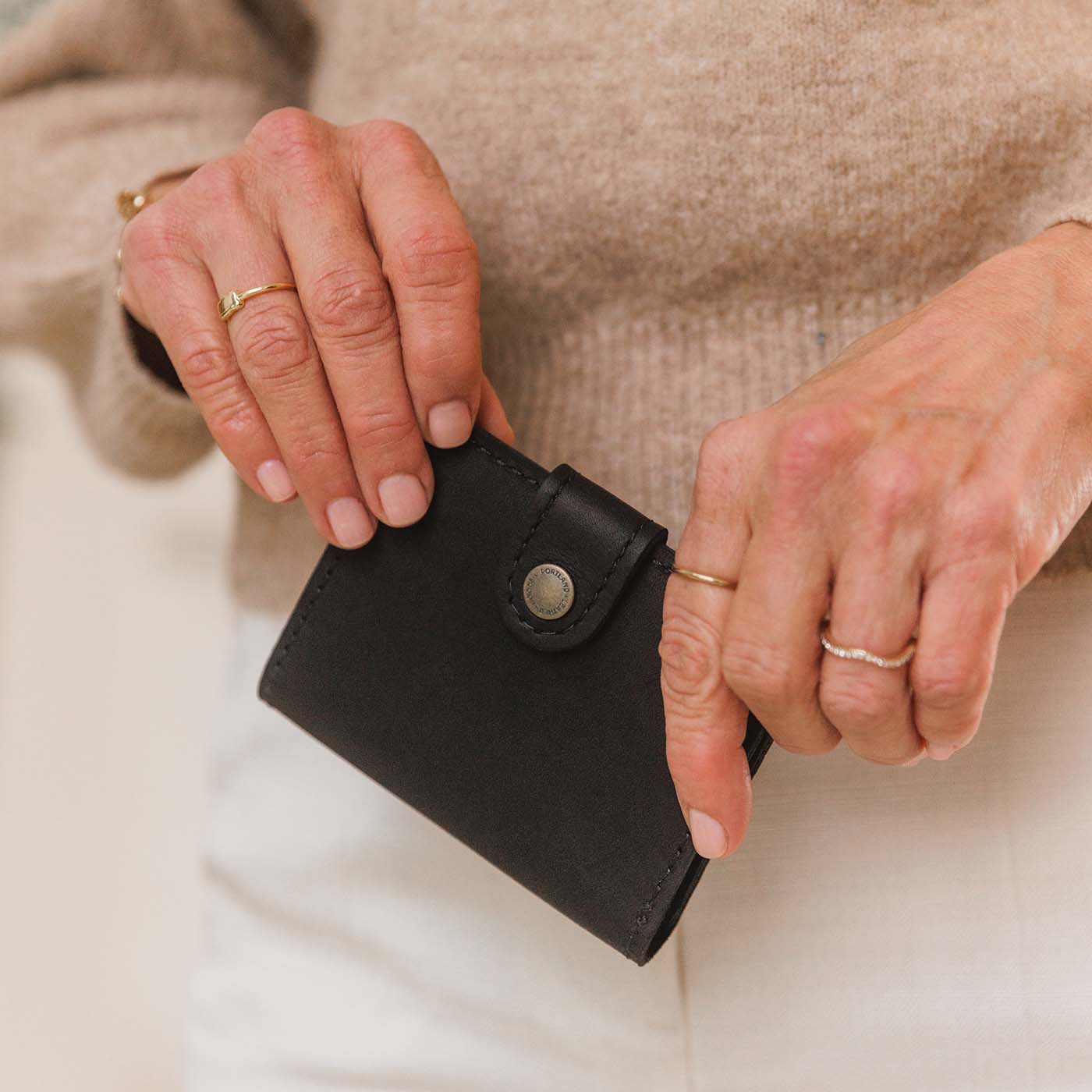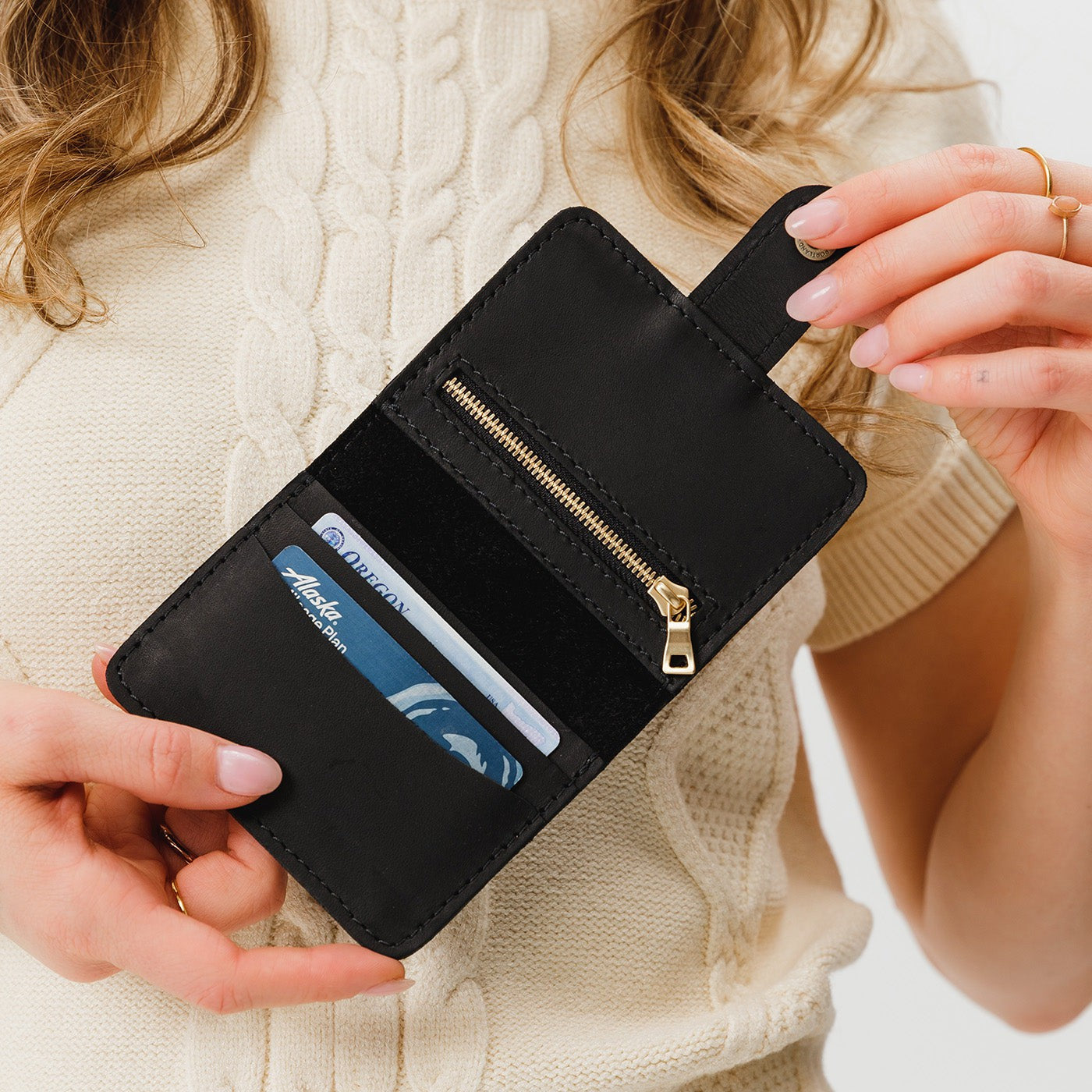 The Mini Bifold is perfect for smaller bags when my regular Bifold takes up too much space. Holds everything I need 🥂