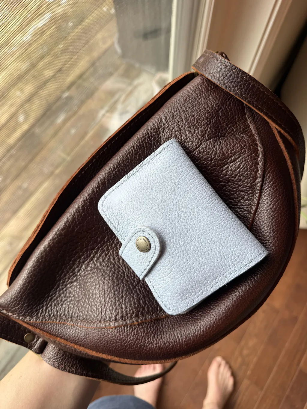 Nutmeg is one of my favorite colors! This wallet is perfect size, with a zipper compartment too. Got is as a bonus and love it! PLG is the best!