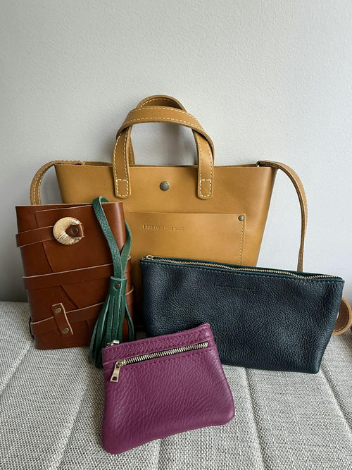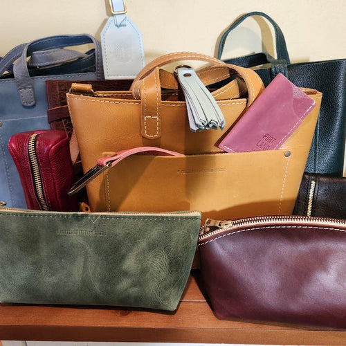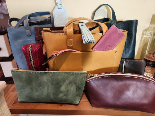 Whether you are buying your first Mini or adding to your stash, this is by far the funnest way to buy leather goods. MINI CROSSBODY TOTES COULD BE ANY COLOR (PICTURED OR NOT) CLASSIC OR ZIPPERED – look inside to find out! You may very well get hooked on the thrill – you’ve been warned…