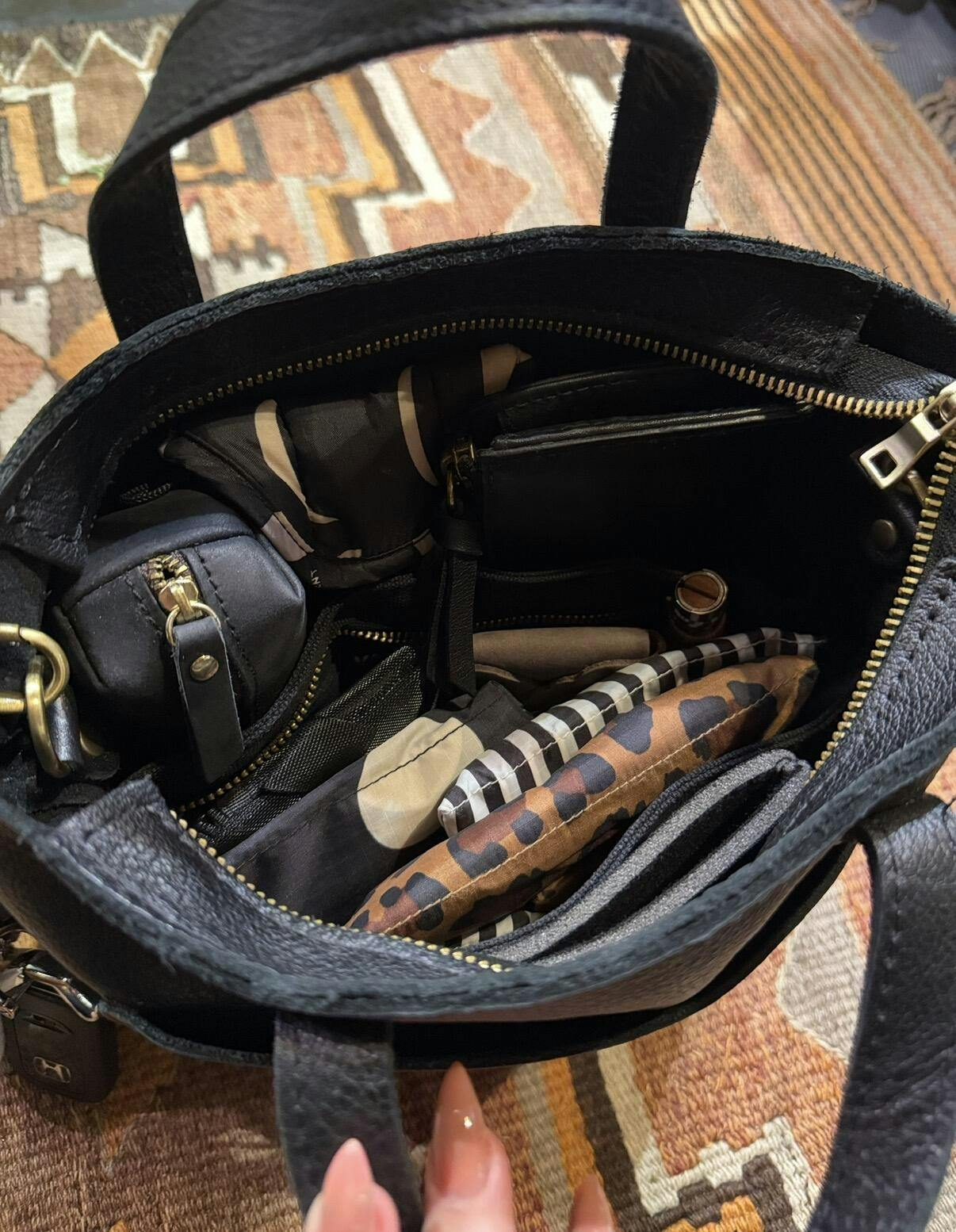 I was hesitant to buy a Mini crossbody Tote because I thought it would be too small for all the things that I carry. I was pleasantly surprised to find that it holds everything that I carry in my Medium tote! The zippered nutmeg is so pretty but also very durable and I know it will hold up to anything I can throw at it. I’m so happy I took a chance on the mini!