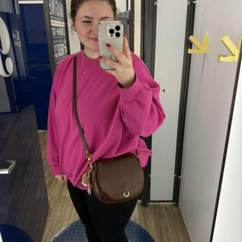 I got a large Monaco in Chocolate Brown on launch day, and it instantly became my favorite PLG bag! It is the perfect size for all my daily carry items, it sits so comfortably against my body, and it can easily be casual or more dressy depending on how you dress it up. The Chocolate Brown leather is SO silky smooth and is just perfection in this style!