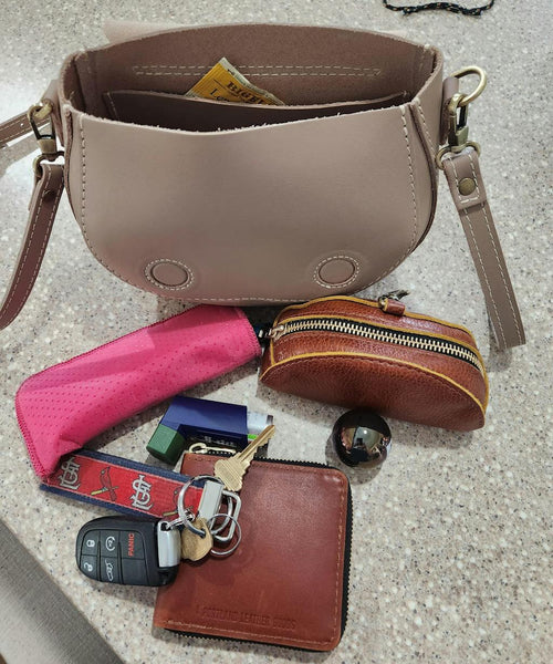 I love my new bag. It fits the same items as my Large Sloan. I like the way it lays on my hip. I will be investing in another color.