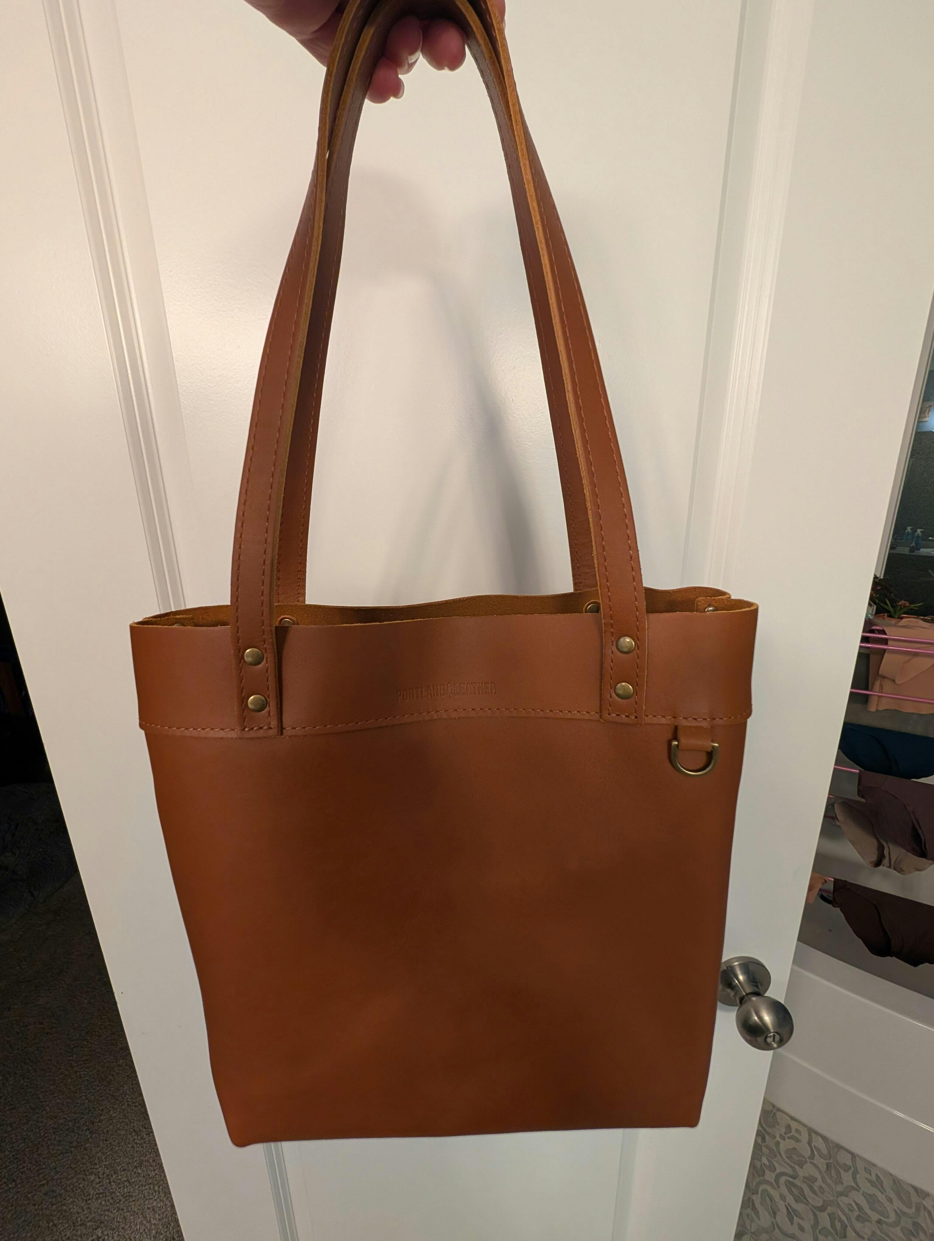 I wasn't sure about this bag at first, but now it's my go to every day carry. It's large enough to fit my coffee thermos and a water bottle plus all my small things. The sienna is so soft and squishy. It's a great bag.