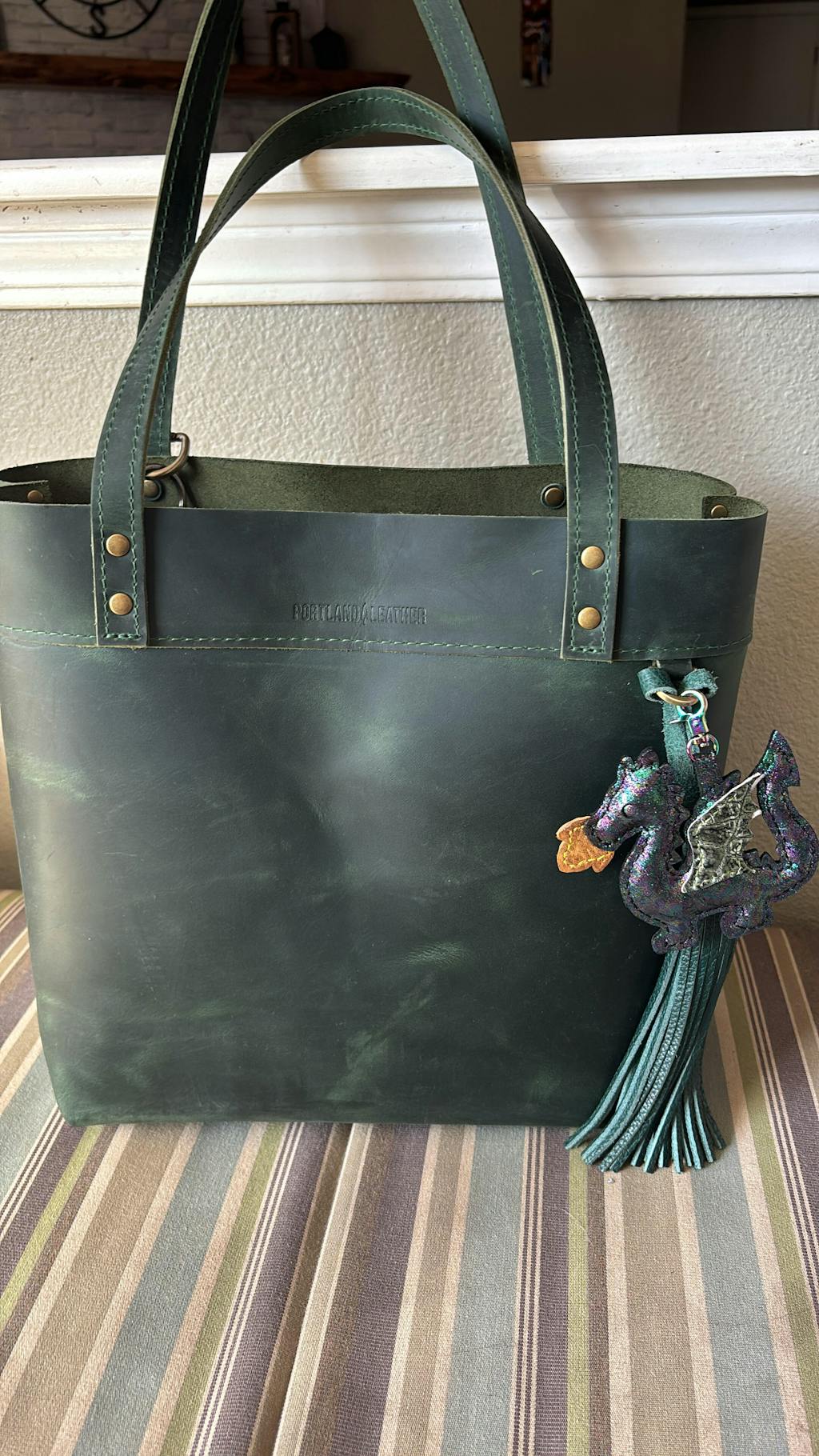 The new Montana tote has fantastic matching handles, and I love the small D ring option for flair and keychains. I went tone on tone with a Forest Green tote and Gordita.