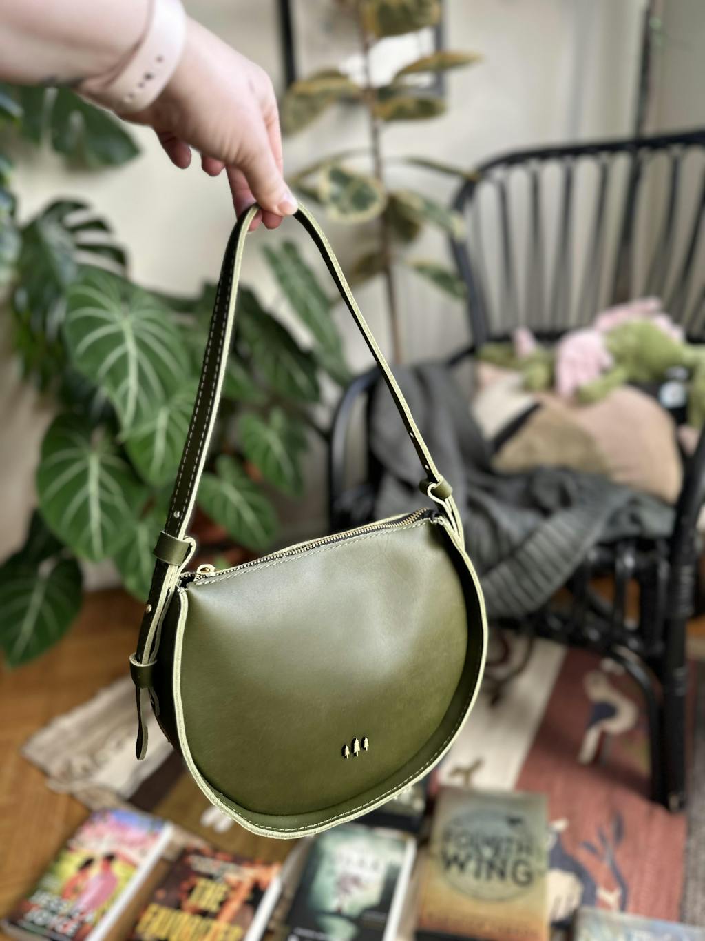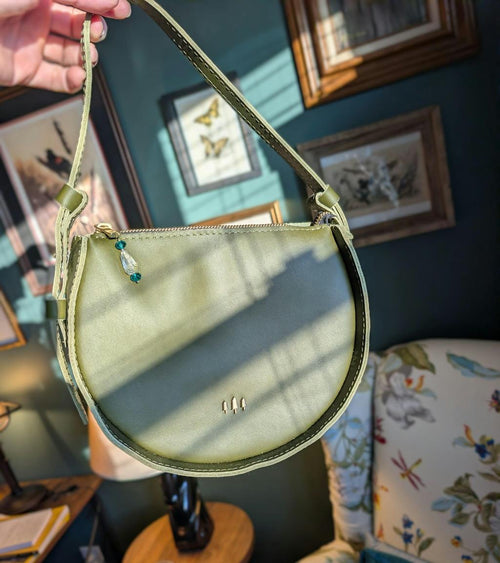 I'm usually a jewel tones person so Pine was a departure for me, but I absolutely love it! It goes great with browns and light purples. The shape of the bag and the bottom rounded panel just make Moonshot so unique, and it holds plenty of stuff!