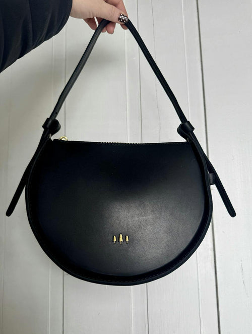I absolutely am over the moon for this little bag (pun intended 😂). I love the adjustable strap. The shape is so fun and the black makes it look so chic. It holds a lot too. I like using my seesaw pouch in it too. It’s one of my new favorite bags