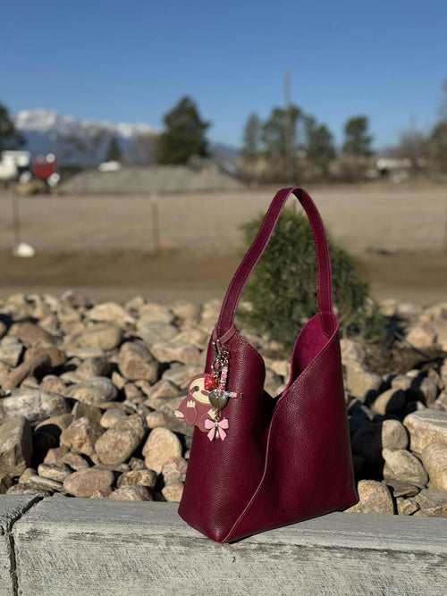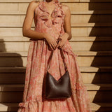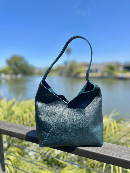 Coldbrew*Small | Model holding petite shoulder bag with adjustable strap and magnetic snap closure