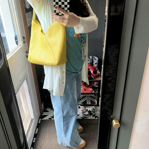 I bought the oversized as a gift for my aunt! It’s so stunning I now want one for myself! I do wish the larger sizes had long enough straps to also make them crossbody style!