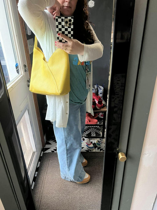 This is my first night owl bag. Love the color. Goes with everything. I am usually a crossbody person but this bag lays nicely on my shoulder. I will consider a summer color in the future.