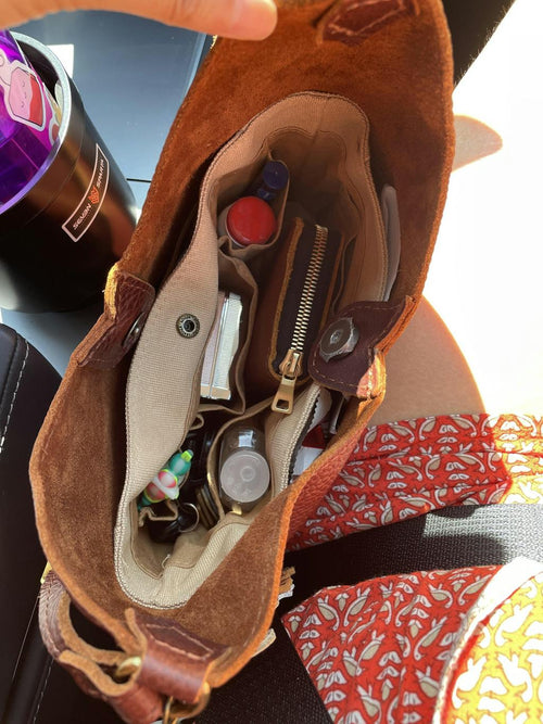 Our durable leather goods are unlined, featuring the natural suede side of the hide. Since fabric-lined bags inevitably discolor and tear with use, we chose to showcase the soft sueded underside of our hides, ensuring that your bag lasts a lifetime.