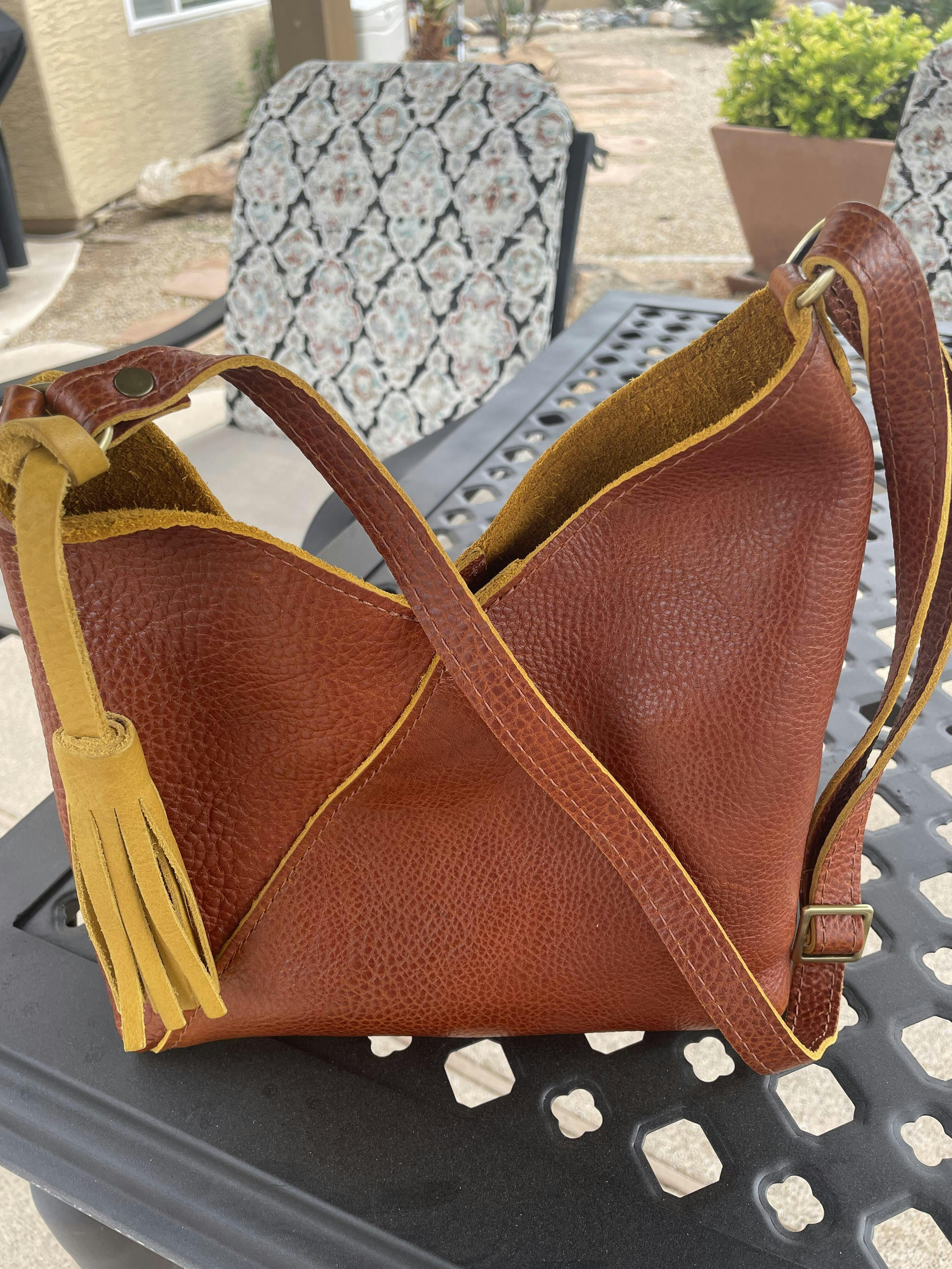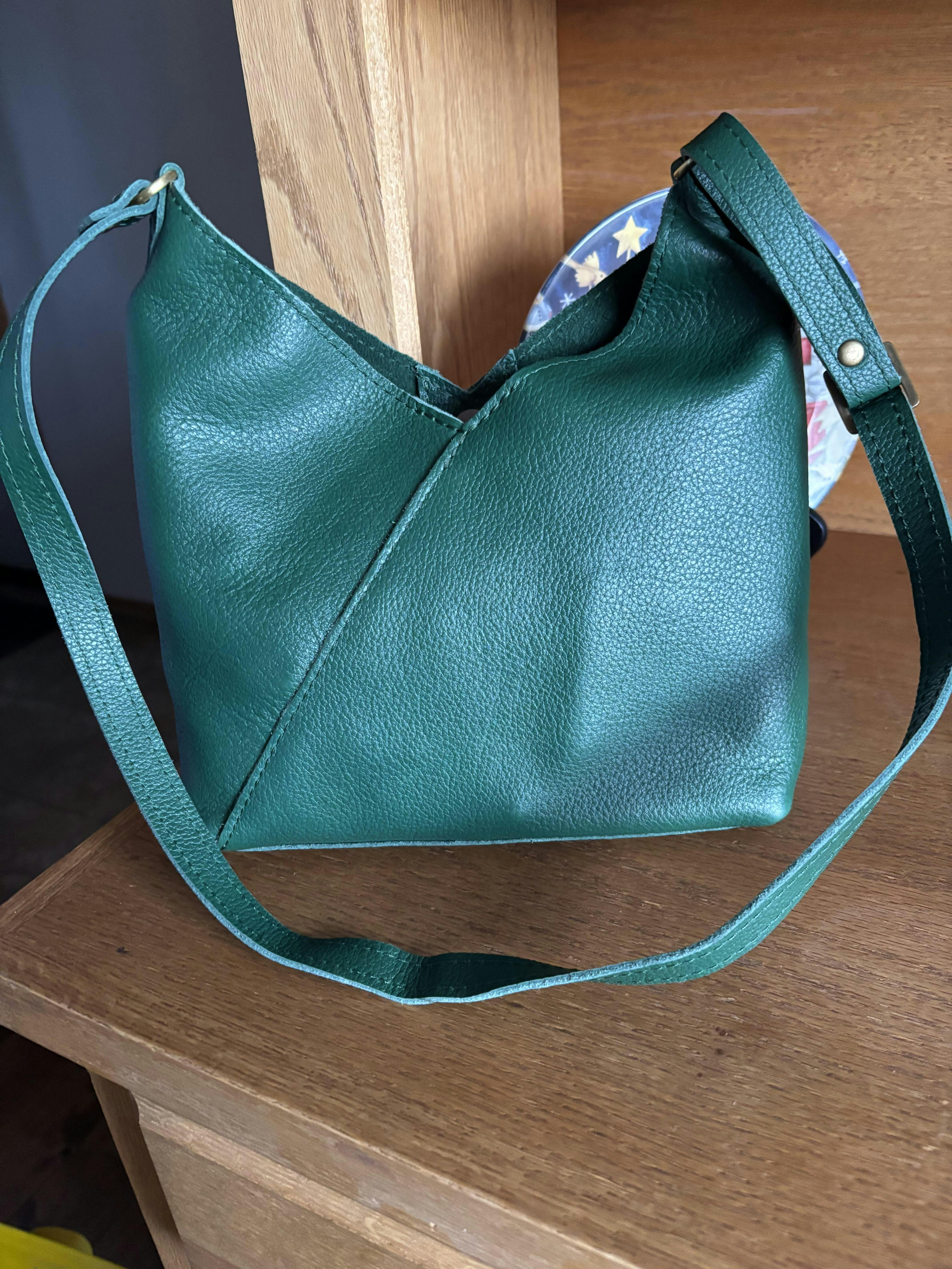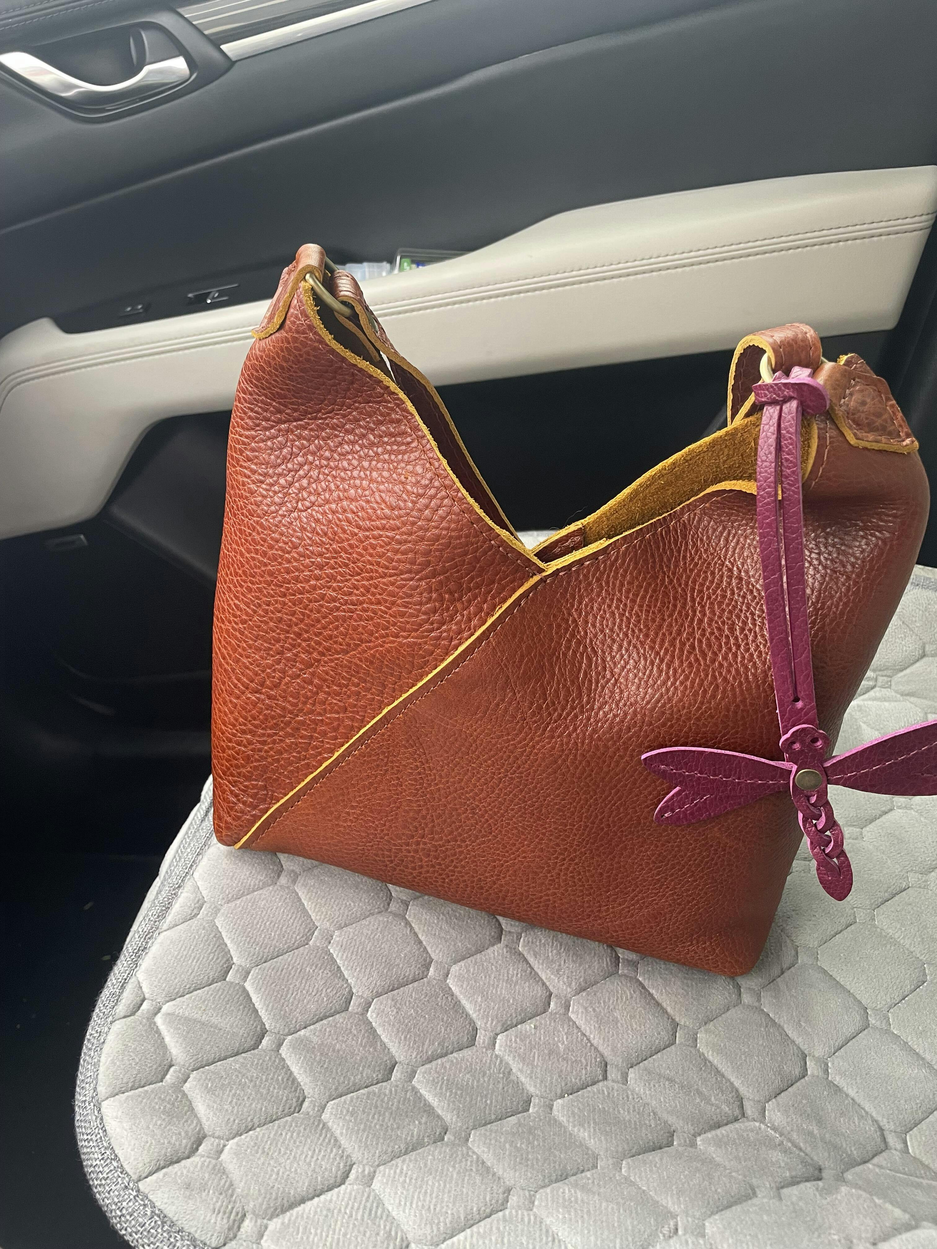 I bought this beautiful small bag in Sienna, it’s so pretty, slouchy and can hold more than I thought it would, it also has a hide stamp! I’d definitely buy this bag in the future in a different color, it’s a great style.