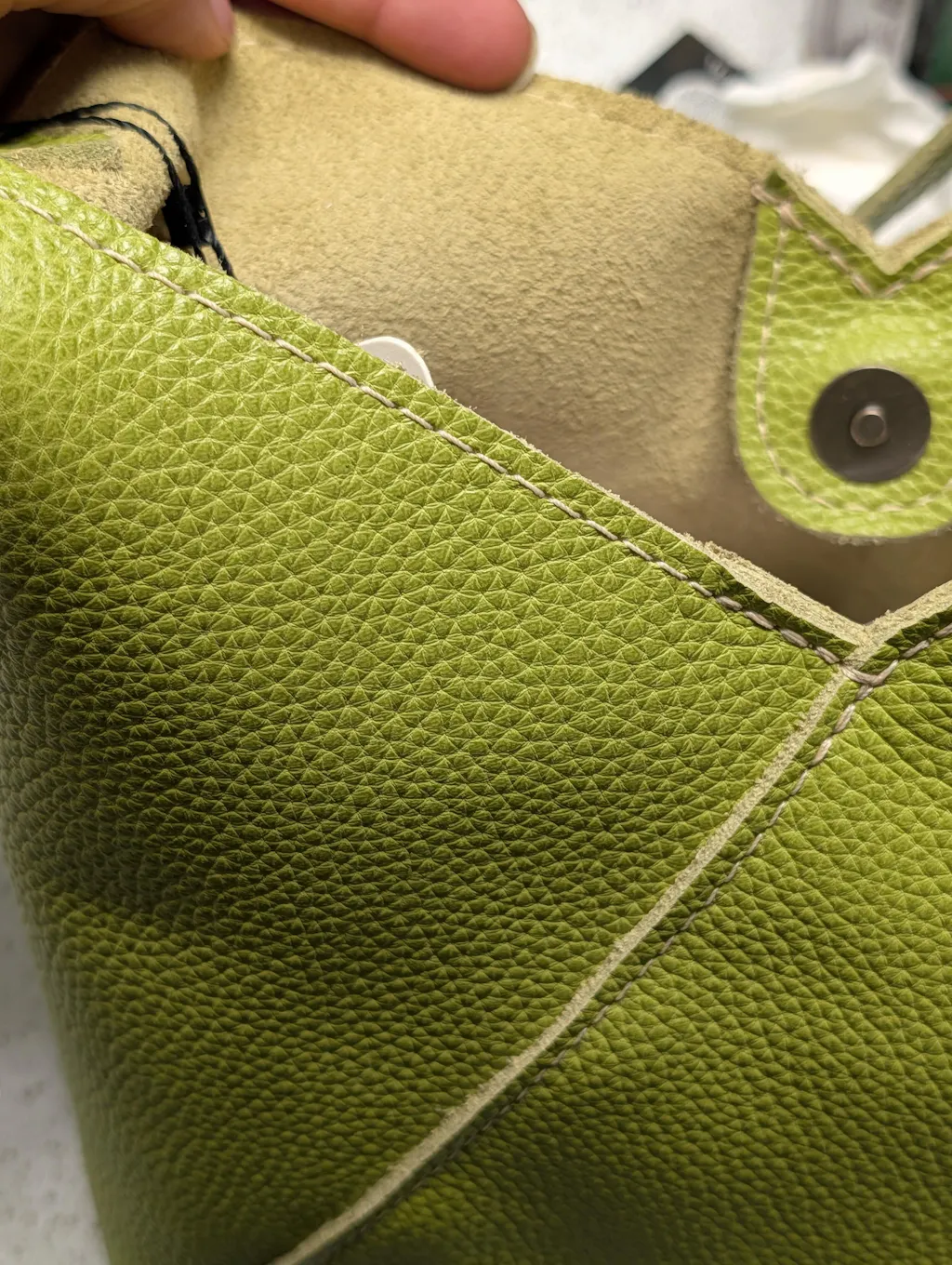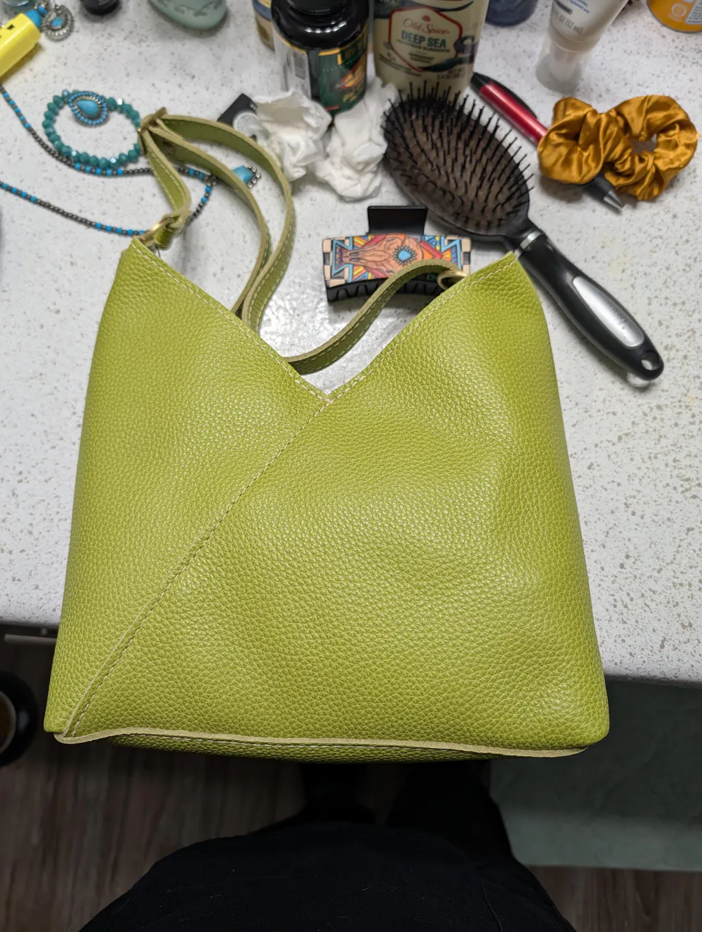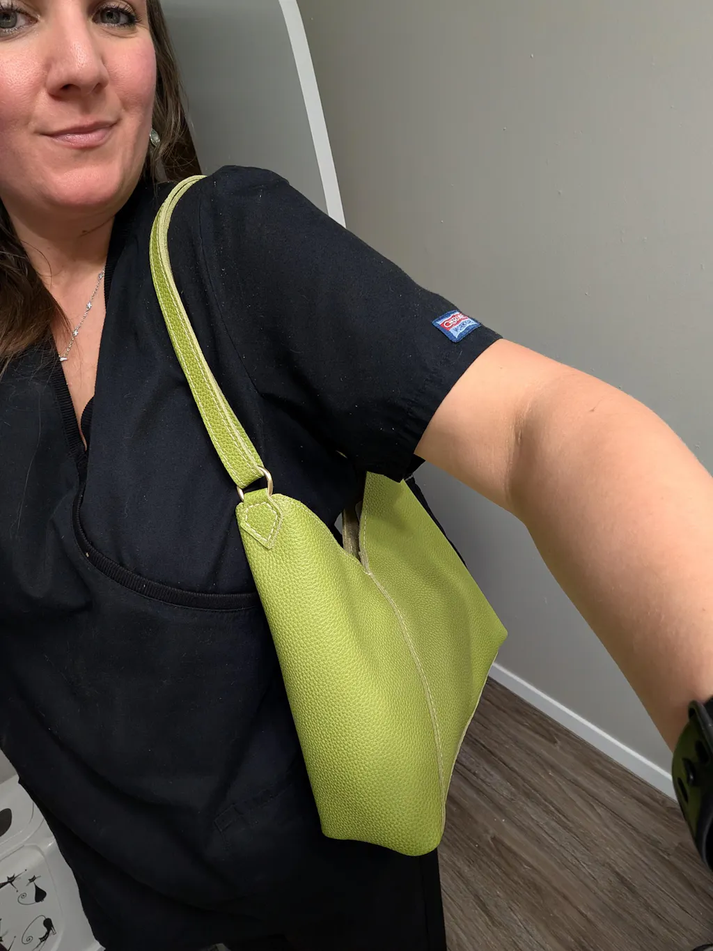 Wasn't sure about this color but I took a chance and I am so happy with it!! I absolutely love it! I got the small Naomi in Wasabi and it's so soft, pebbly and gorgeous. It has great slouch too. Love this bag and love this color. 💚