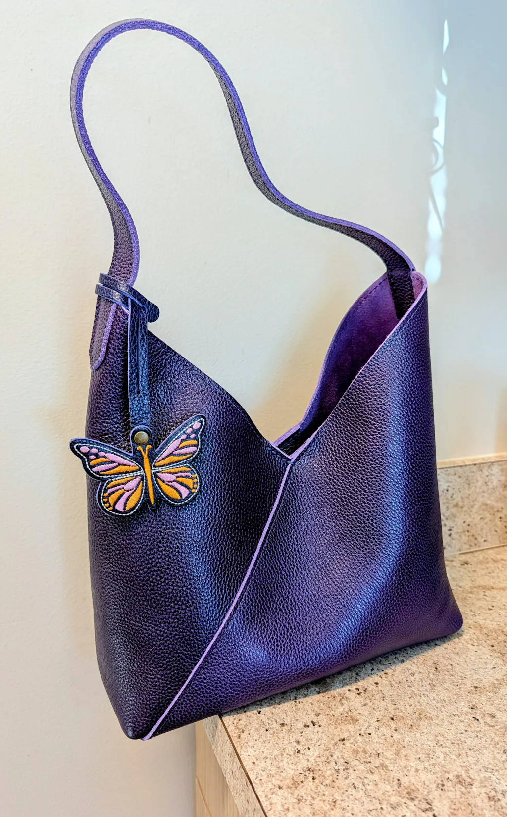 Absolutely love the color! I have multiple bags in the Naomi style and I absolutely love this color! If you love purple then you have to get this color. Soft, pebbly rich purple. 💜💜💜