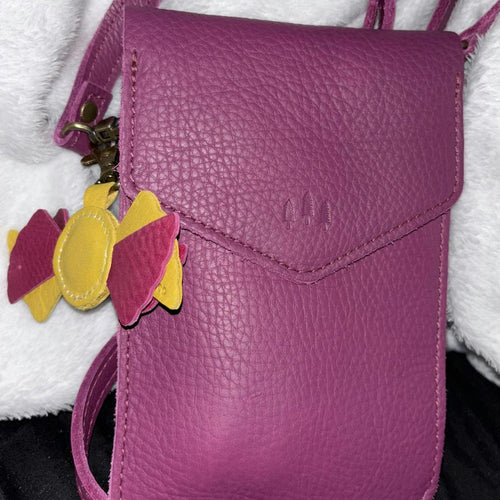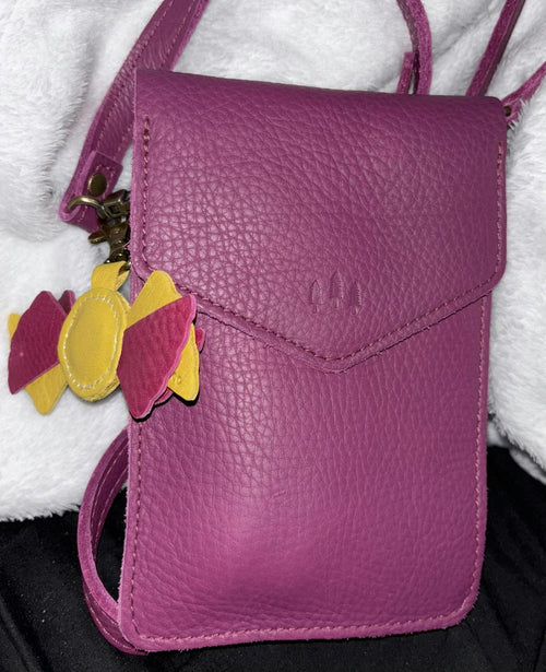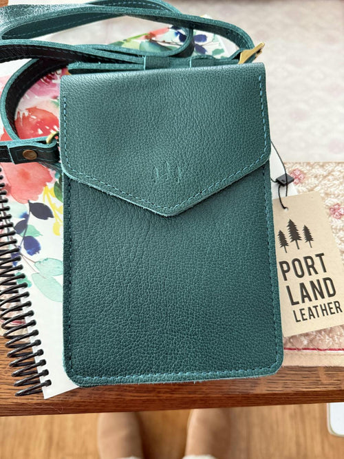 I have the beautiful Sea Glass color phone bag. This bag is roomy enough to add a little more than just my phone to the bag. I love the soft leather and its quality in protecting my phone. It makes carrying my phone so much easier at places where I just want my phone with me. It hangs softly; it is not heavy. Tonight I was at an event of about 50 or so people. I could move easily through the crowd with my hands free of my phone but when I wanted to snap a few pics, I could easily pulled it out of its bag. I am very happy with my purchase. The Sea Glass color is fun too.