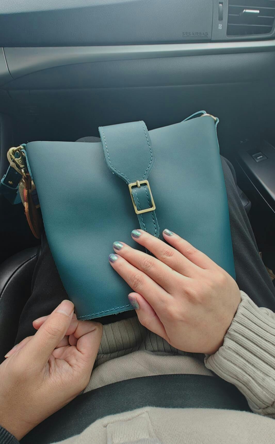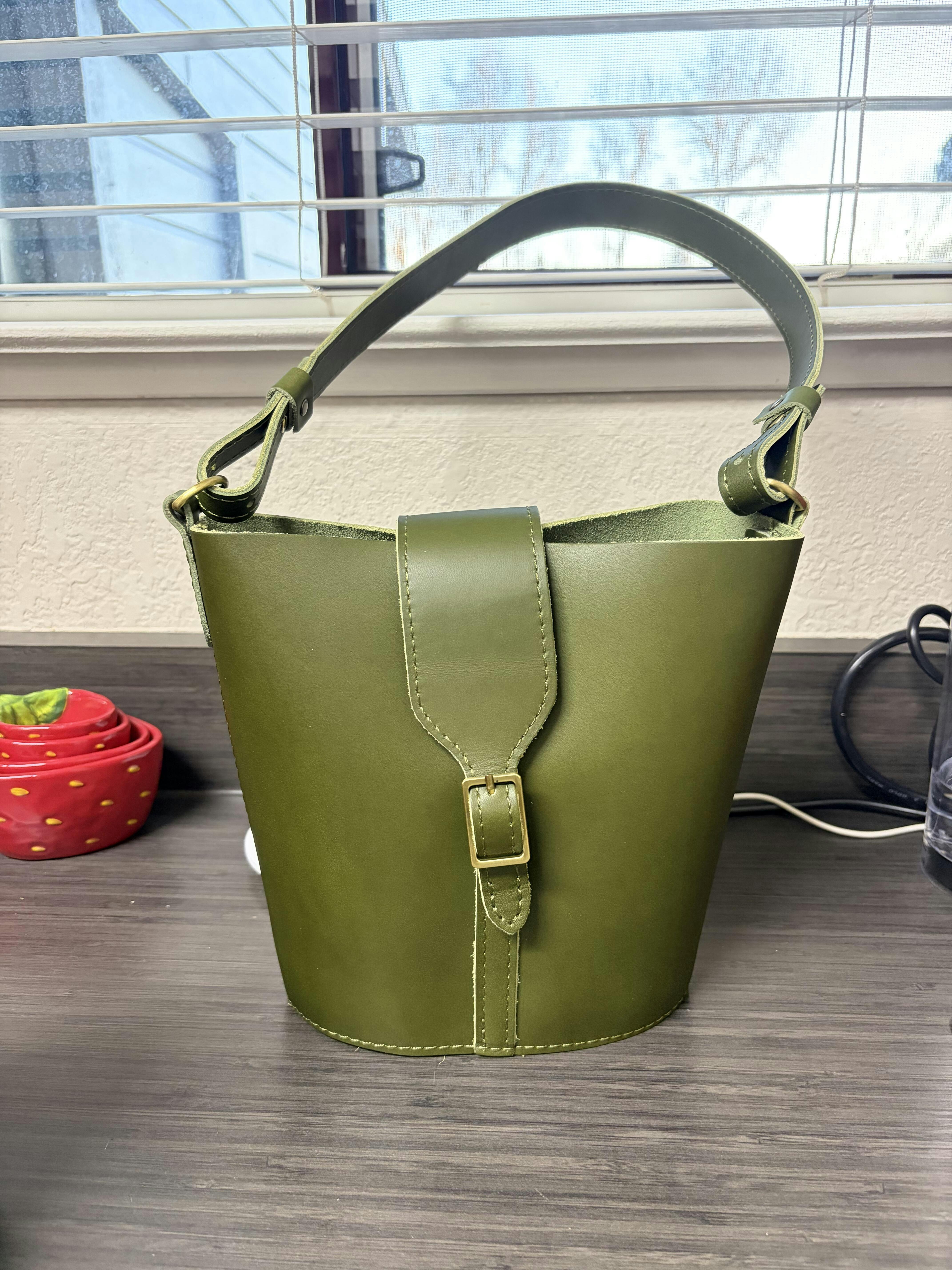 Such a cute and stylish bucket bag! Perfect for a night out. Pine is a beautiful color!