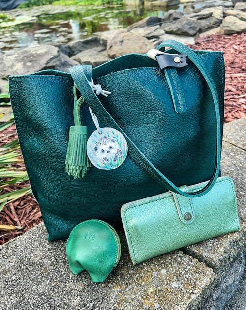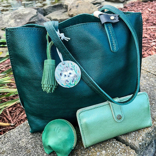 Such a great accessory to any bag. This was my first Pom and I love the classic style. Excellent quality and the deep water color goes well with so many of my PLG bags. Love, love, love! Here it is on my Sunflower mini crossbody.