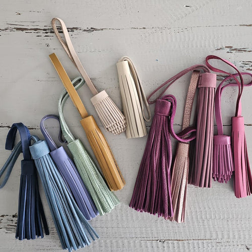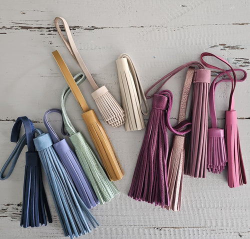 I recently bought the lavender tassel to add a pop of color to my bags and to pair with my other lavender goods. It goes well with my medium pomegranate crossbody, the tassels do seem to be a bit stiff though which isn’t a issue to me.