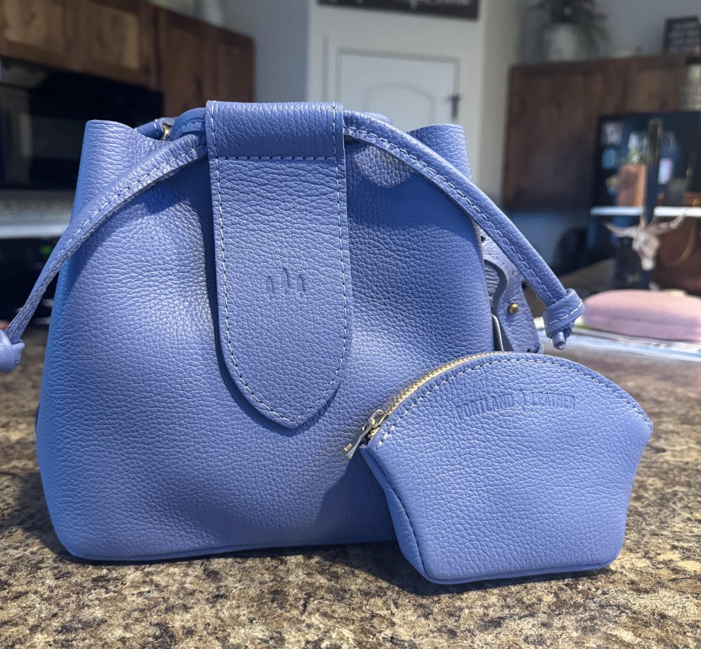 I’ve been using a Mini Envelope wallet for a year and it was starting to get a little snug, so I decided to try this pouch as a wallet and it’s working great for me. I have several cards, some cash, a small coin purse and some business cards in there and it’s still slim and has room to easily find things. It’s also a cute and unique shape, which is fun! The Seaglass leather isn’t quite as soft and squishy as I’d hoped it would be, but it’s a pretty blue-ish/green-ish color. I took a comparison picture with my Bacalar Koala as I had been curious how they compared in real life. I’m also using a large Seashell pouch for my other needed items and they fit nicely together in my Koalas.