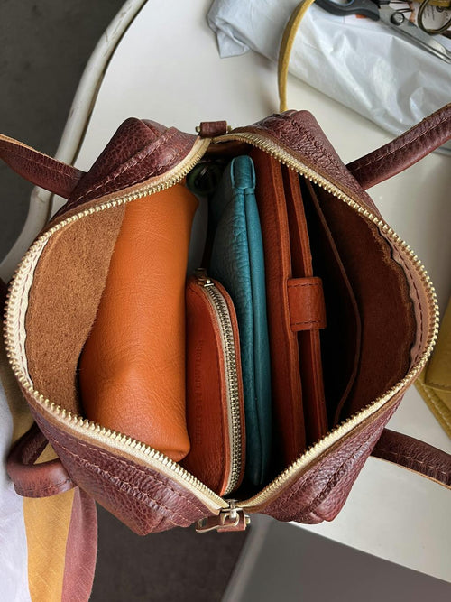 Our durable leather goods are unlined, featuring the natural suede side of the hide. Since fabric-lined bags inevitably discolor and tear with use, we chose to showcase the soft sueded underside of our hides, ensuring that your bag lasts a lifetime.