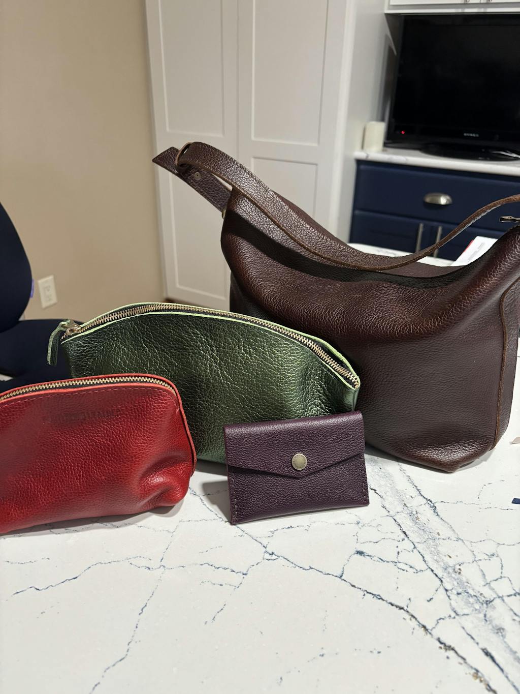 Love my Nutmeg Small Slouchy. Perfect size for all my essentials and love pebbled slouchy leathers! The only thing that would make it better is an inside pocket in the back for a phone.