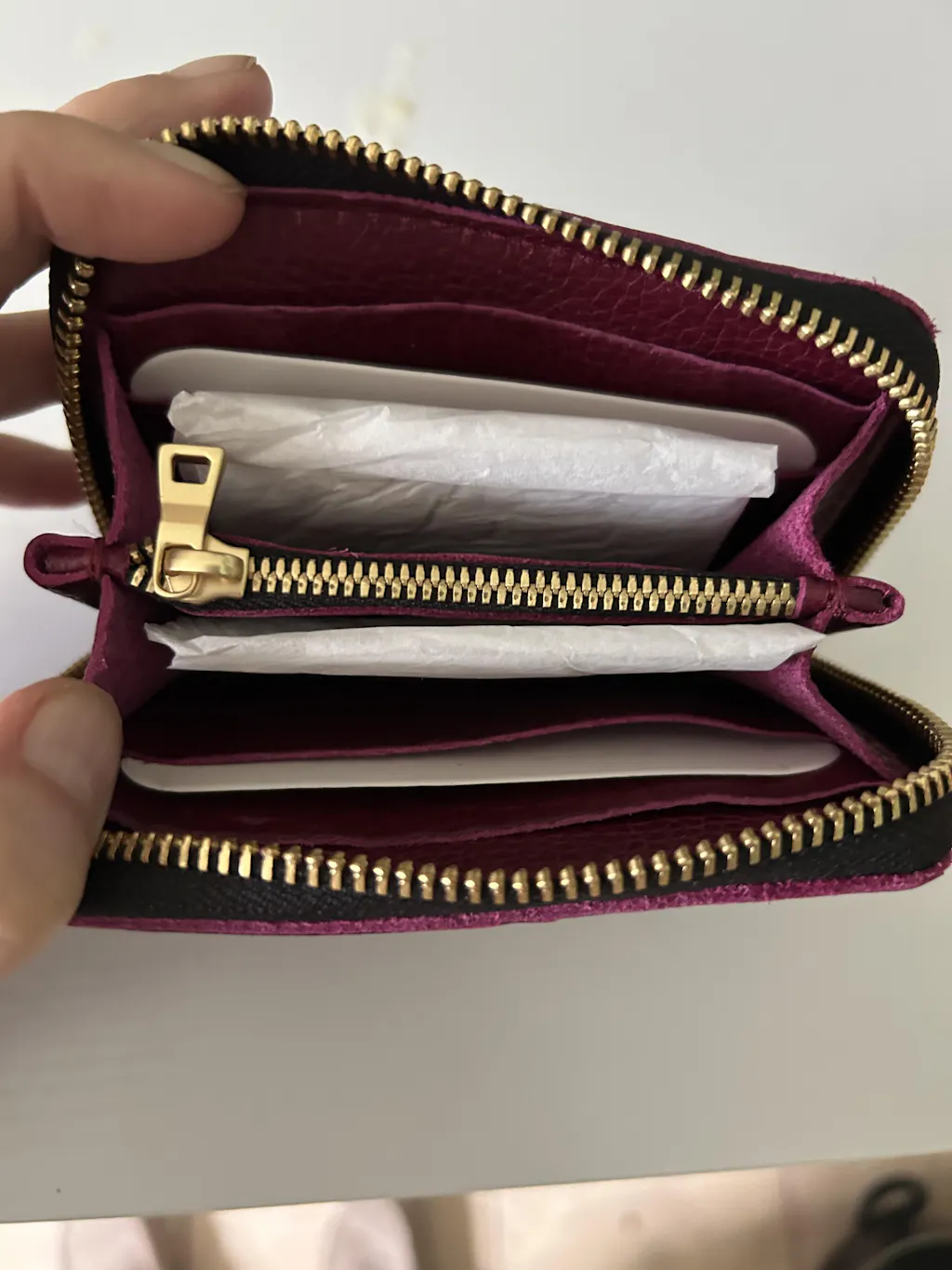 I bought this wallet (cold brew) to fit in my small circle crossbody. I like it, but I don’t love it. I have a little trouble with the zipper around one of the corners and when I put my stuff in it, it’s too full. If you only want to carry a few cards and not much else, it’s perfect, but there’s so much leather built up already in the inside that there’s not room for a whole lot else. I’ll keep it so it can fit in my small circle crossbody bag, but if I can find something better, I’ll probably switch.