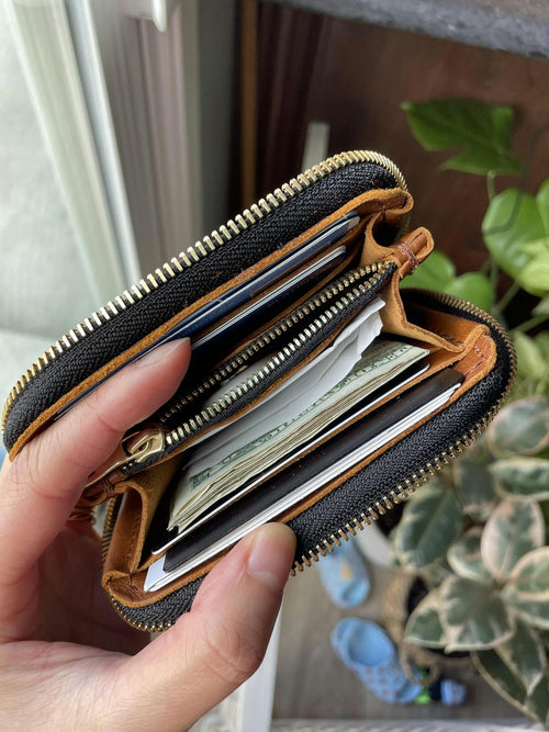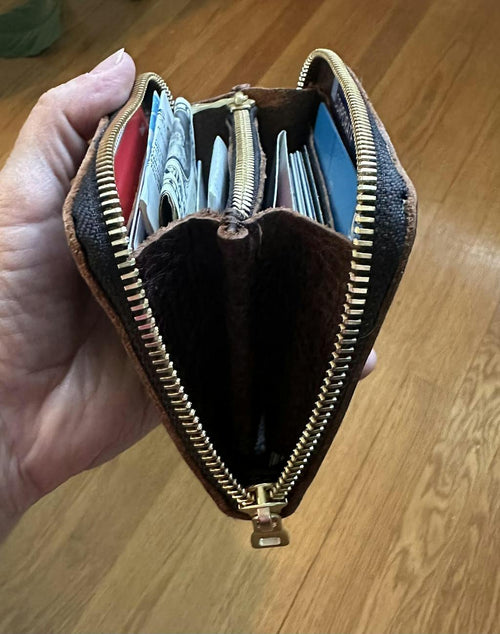 • 4 card slots, 2 large pockets for cash, and a zippered coin pocket