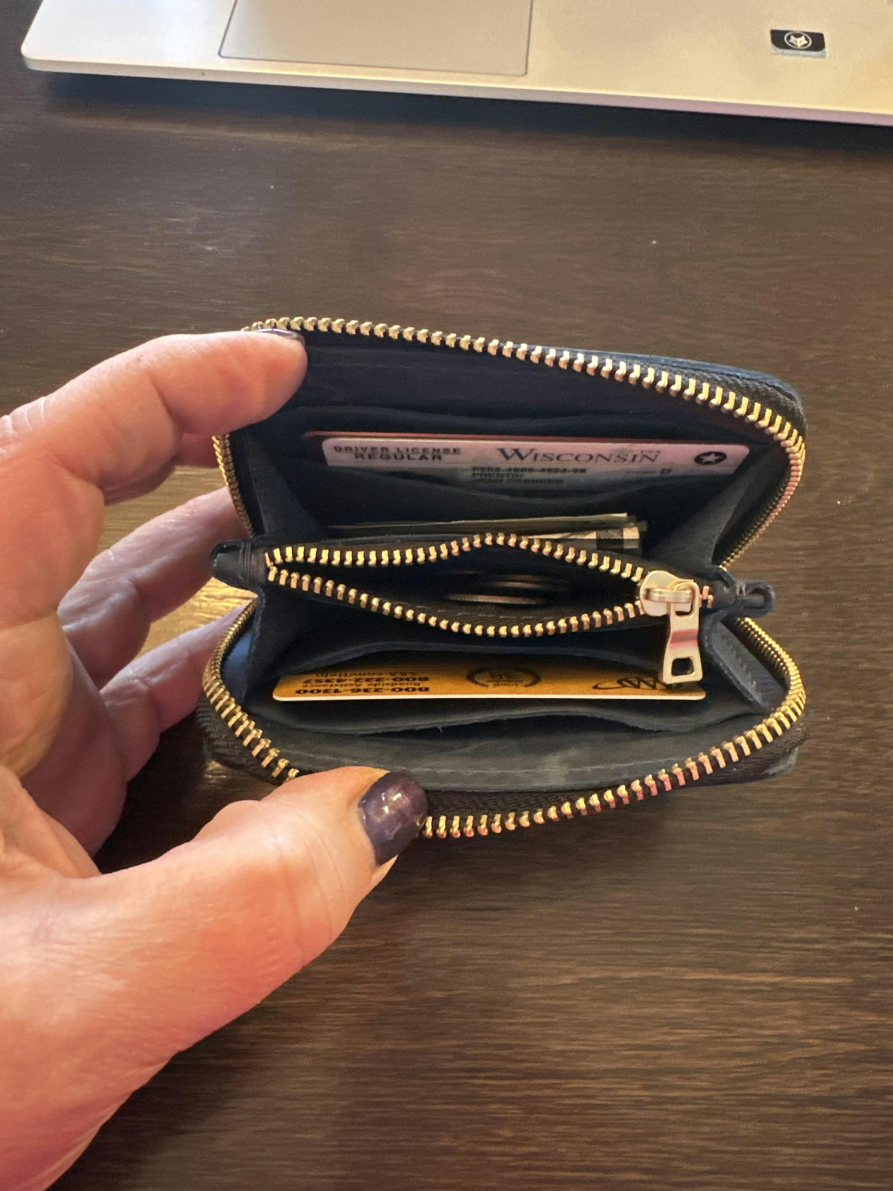 Love the size of this wallet for use in smaller bags. Fits just perfectly. The zipper coin pouch gives me added functionality. A great small wallet overall!